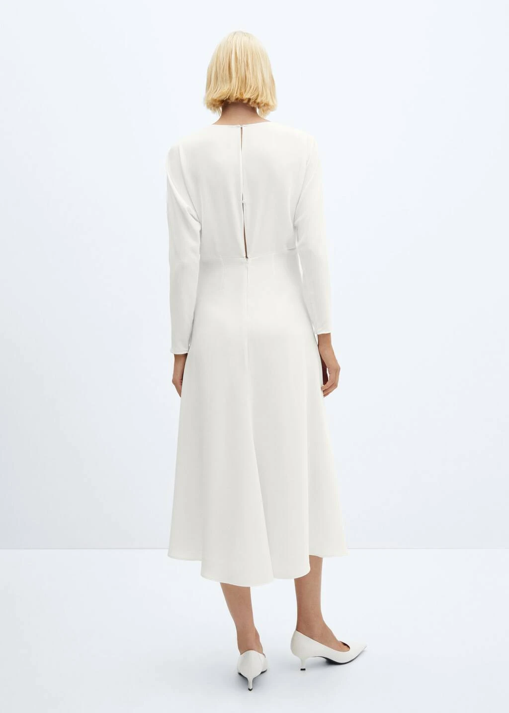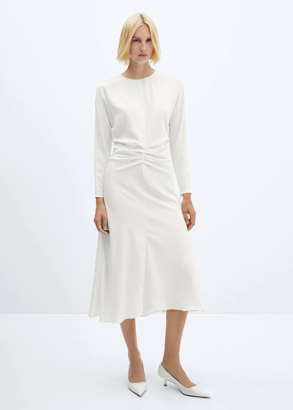 tissu fluide, coupe midi, evase, col rond, manches longues, zip, fermeture boutonnee a l’arriere, fermeture eclair invisible a l’arriere, detail fronce, doublure.Composition: 100% polyester. Doublure: 100% polyester