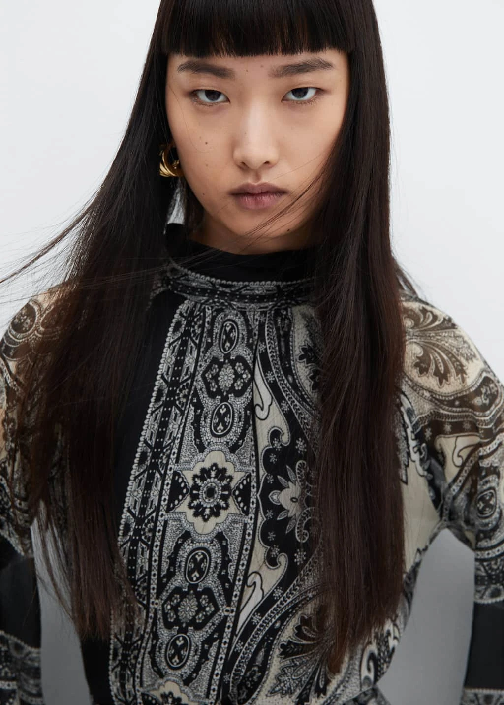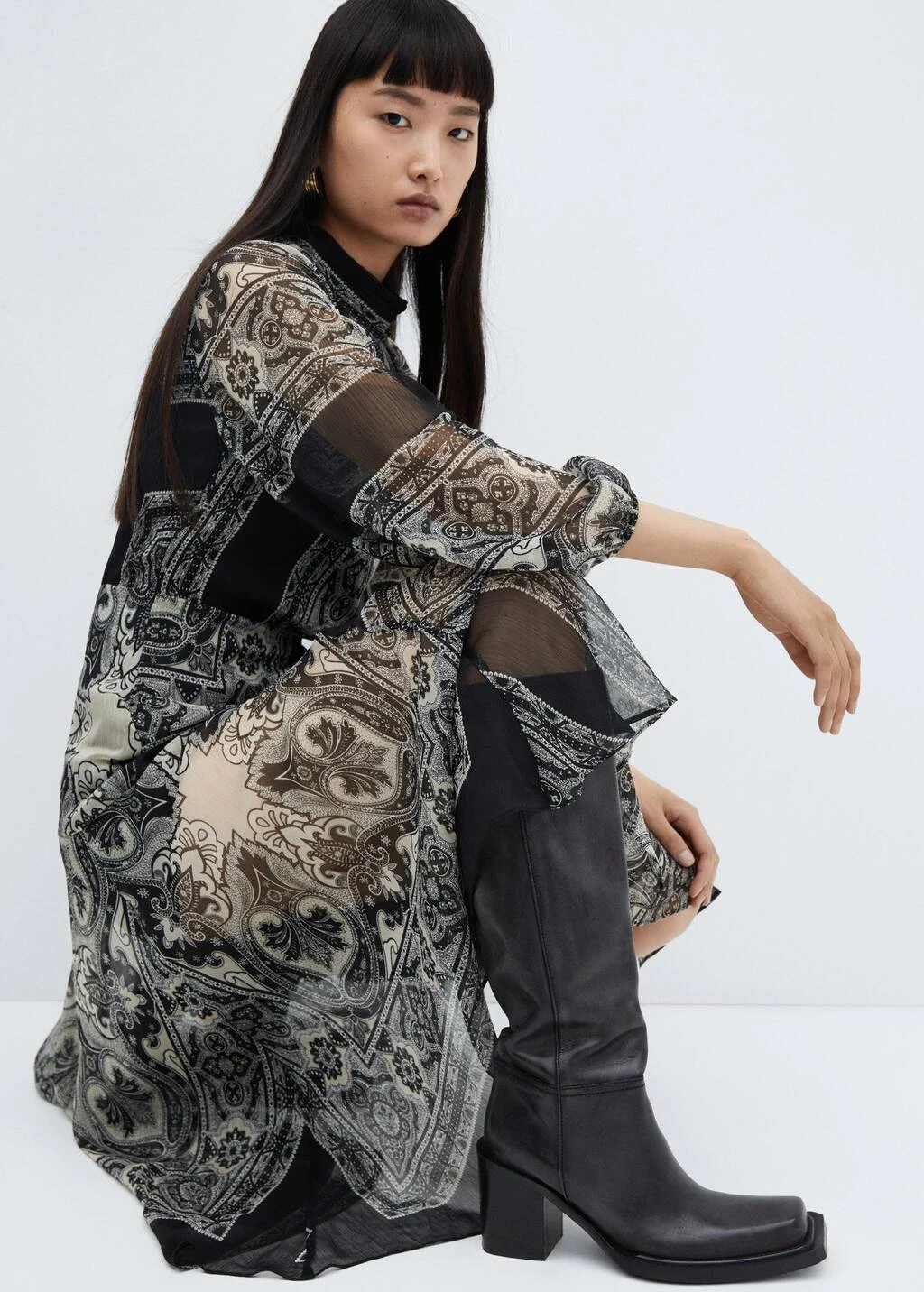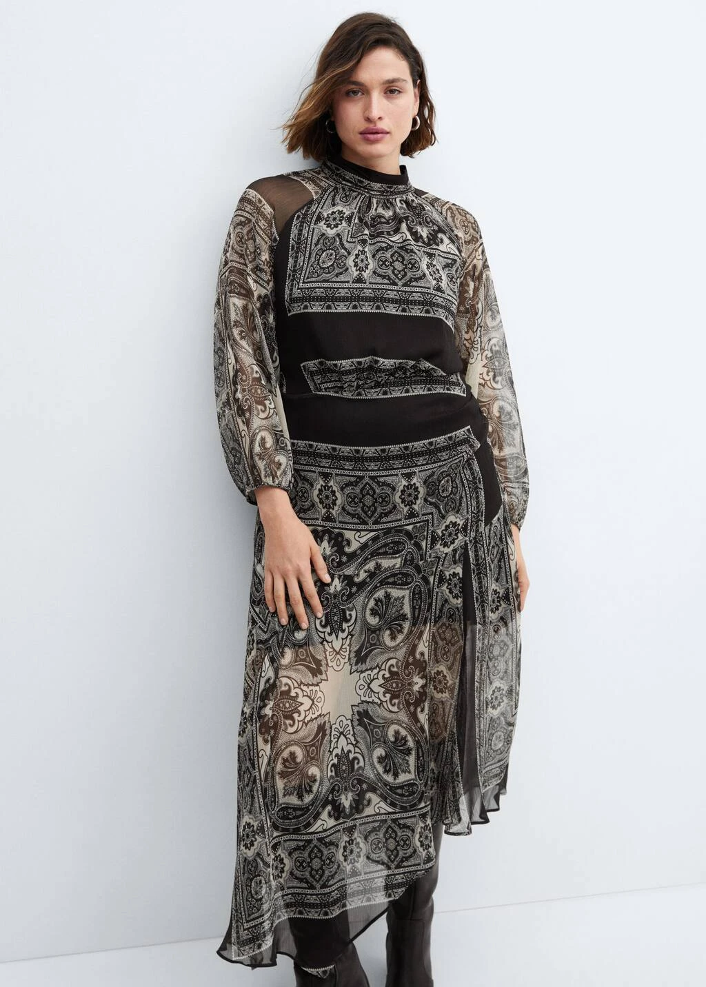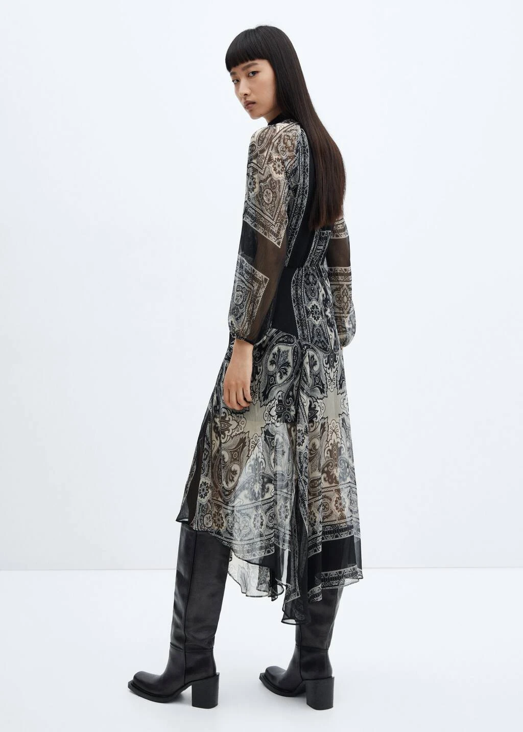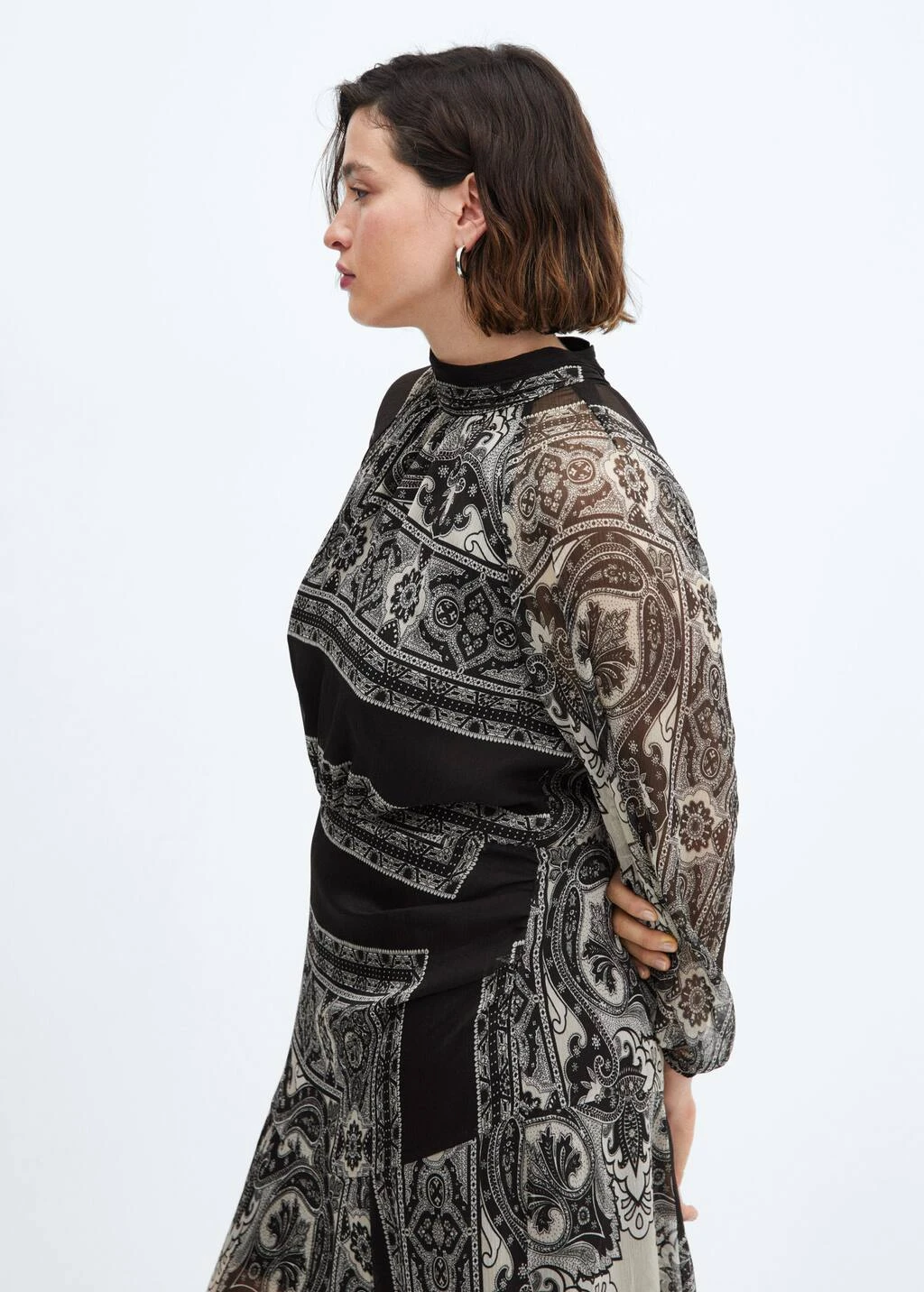 tissu en gaze, tissu fluide, modele semi-transparent, coupe longue, col roule, manches longues avec poignets elastiques, manches bouffantes, fermeture laterale, fermeture en goutte a l’arriere, bas asymetrique, disponible plusComposition: 100% polyester