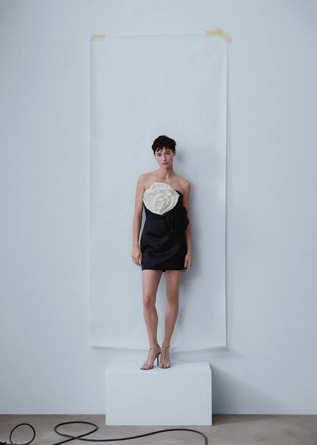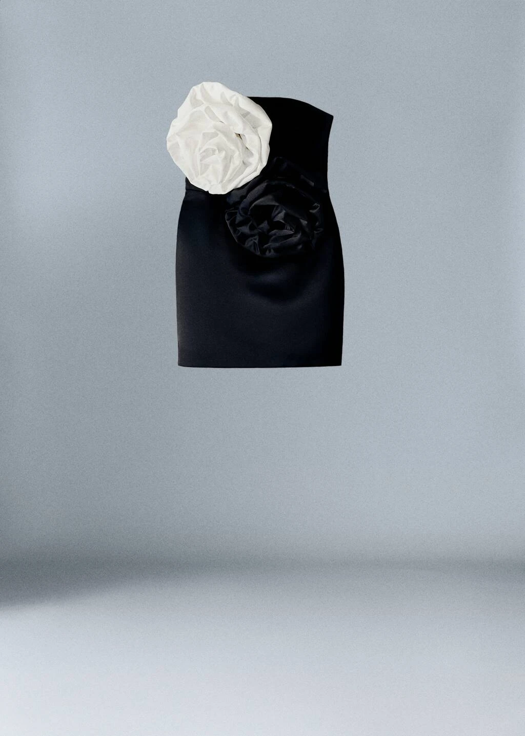 soyez l’invitee parfaite avec cette option bicolore. avec ses deux maxifleurs en 3d et la qualite de ses finitions, cette piece unique vous fera briller lors de vos celebrations les plus importantes., tissu satine, coupe cintree, coupe courte, bicolore, detail de maxifleurs, bustier, sans manches, fermeture eclair a l’arriere, nous vous conseillons de disposer la fleur de maniere a ce qu’elle soit plus belle sur la robe, fabrique au maroc, collection fetes et ceremonies, le polyester recycle est obtenu a partir de dechets textiles de polyester, de dechets marins ou de bouteilles en plastique pet qui sont utilises pour produire de nouveaux tissus.COMPOSITION:100% POLYESTER. DOUBLURE:100% POLYESTER. APPLIQUE:100% POLYESTER