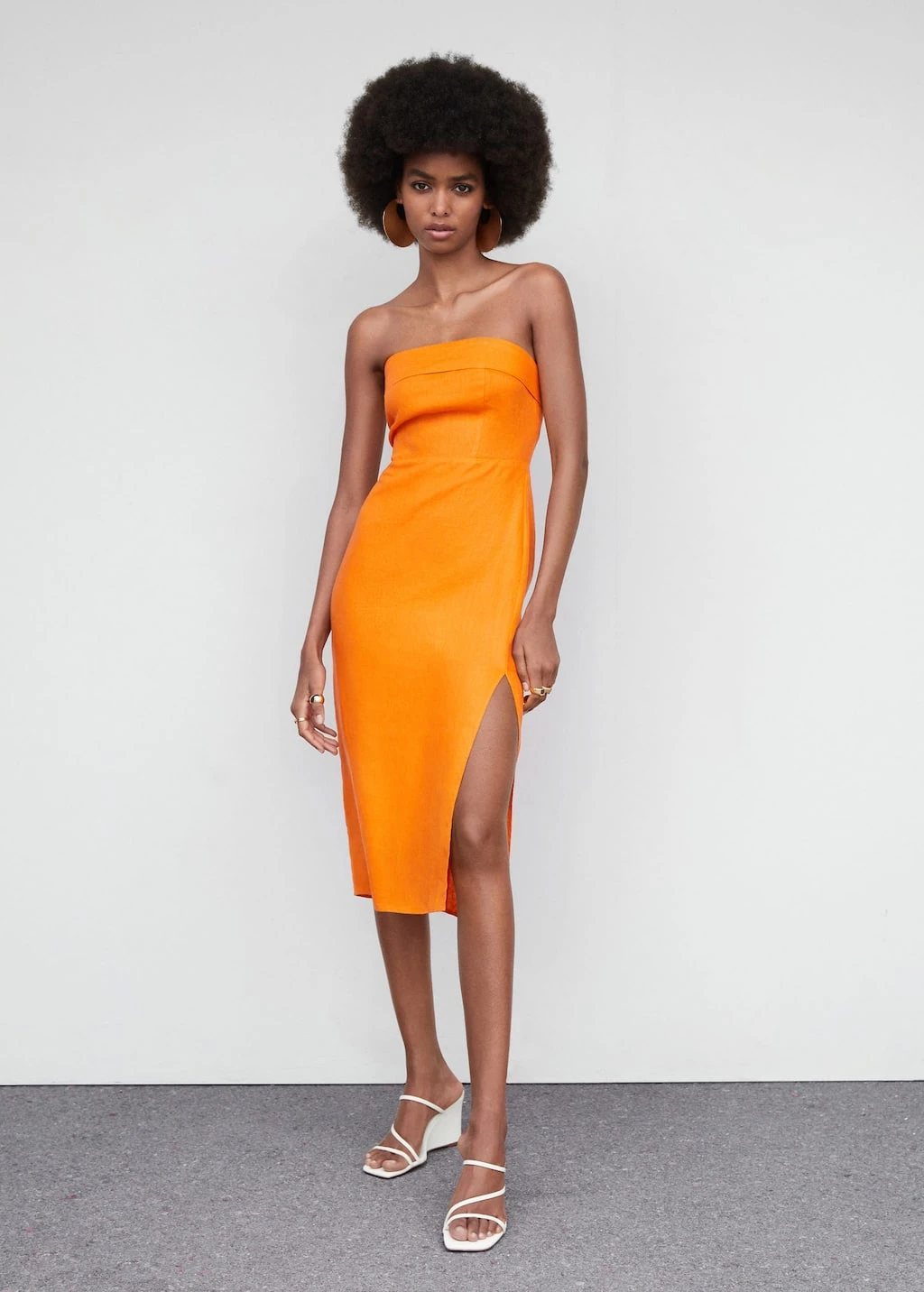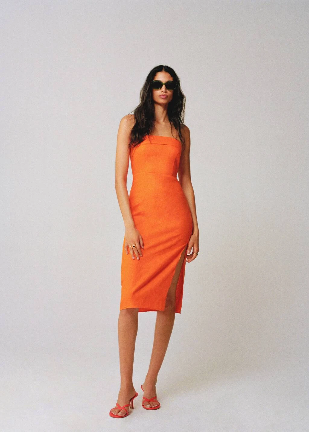 tissu 100 % lin, ajuste, coupe midi, bustier, sans manches, fermeture eclair a l’arriere, fente lateraleComposition: 100% lin