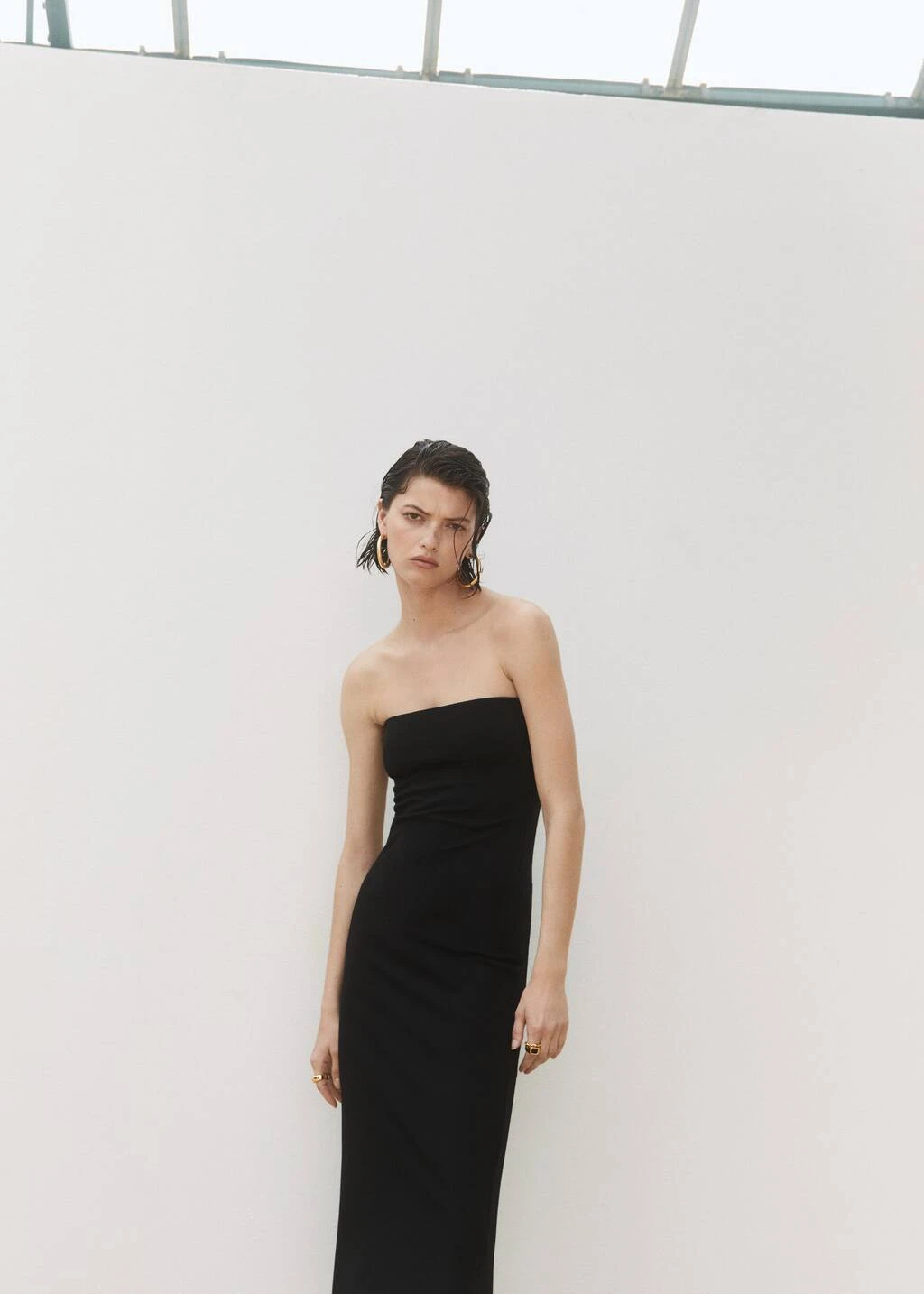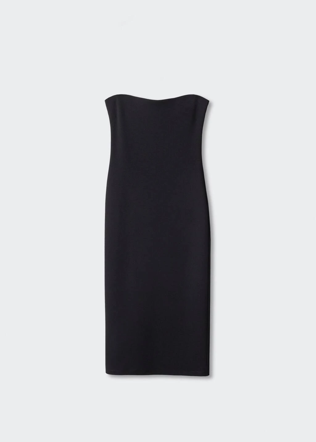 tissu fluide, ajuste, coupe midi, bustier, sans manches, fermeture eclair laterale, collection fetes et ceremoniesComposition: 96% polyester,4% elasthanne