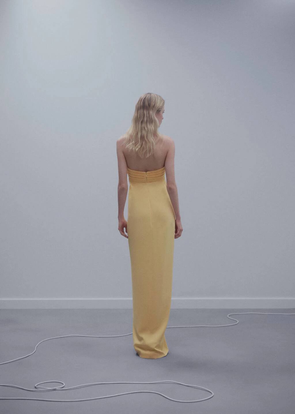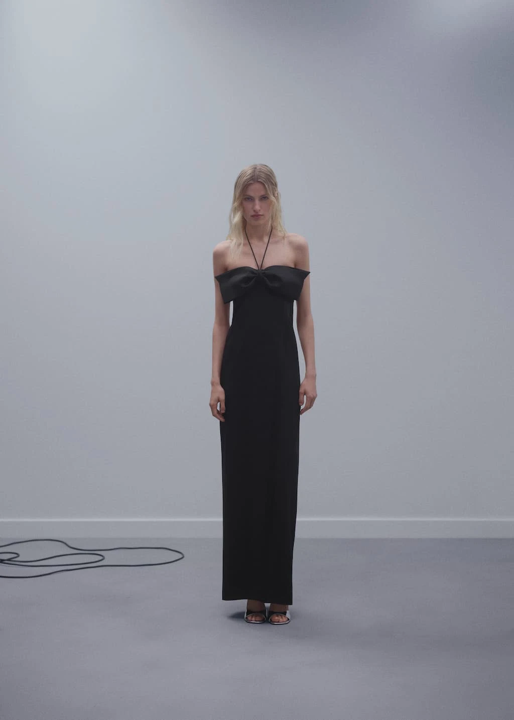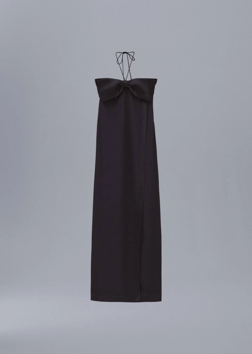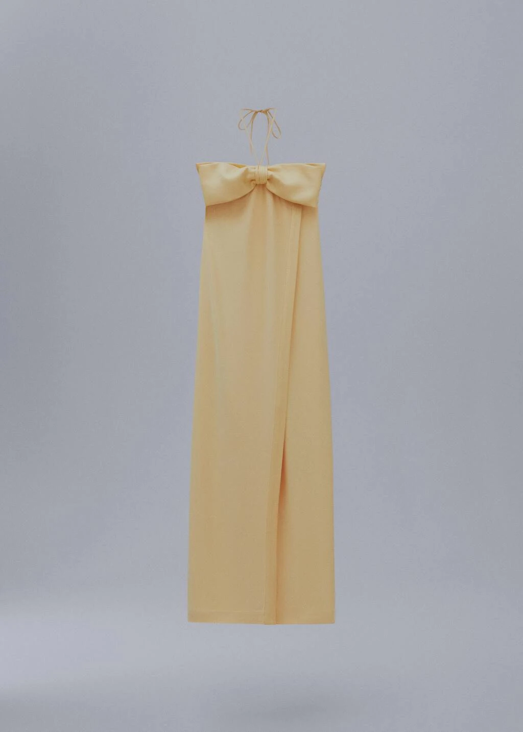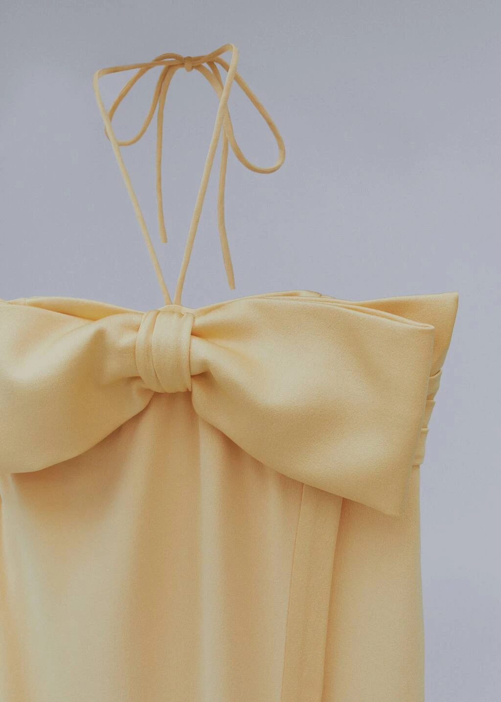 confectionnee dans un tissu satine haut de gamme, avec un design croise, un col a maxi-nœud et des emmanchures americaines, cette piece est un choix sophistique et original pour vos evenements de la saison. disponible en deux couleurs tendance : noir et jaune pastel, tissu satine, tissu fluide, coupe cintree, coupe longue, emmanchures americaines, maxinœud, encolure au dos, lien a nouer autour du cou, fermeture eclair a l’arriere, fabrique au maroc, collection fetes et ceremonies, capsule : une collection de vetements en edition limitee, fabriques avec les meilleurs tissus et le plus grand soin en matiere de patrons, afin d’obtenir les meilleures finitions. cette collection exclusive est concue pour les evenements et les occasions les plus chics.Composition: 71% acetate,29% viscose. Jupe: 71% acetate,29% viscose. Nœud: 71% acetate,29% viscose. Lisiere: 71% acetate,29% viscose