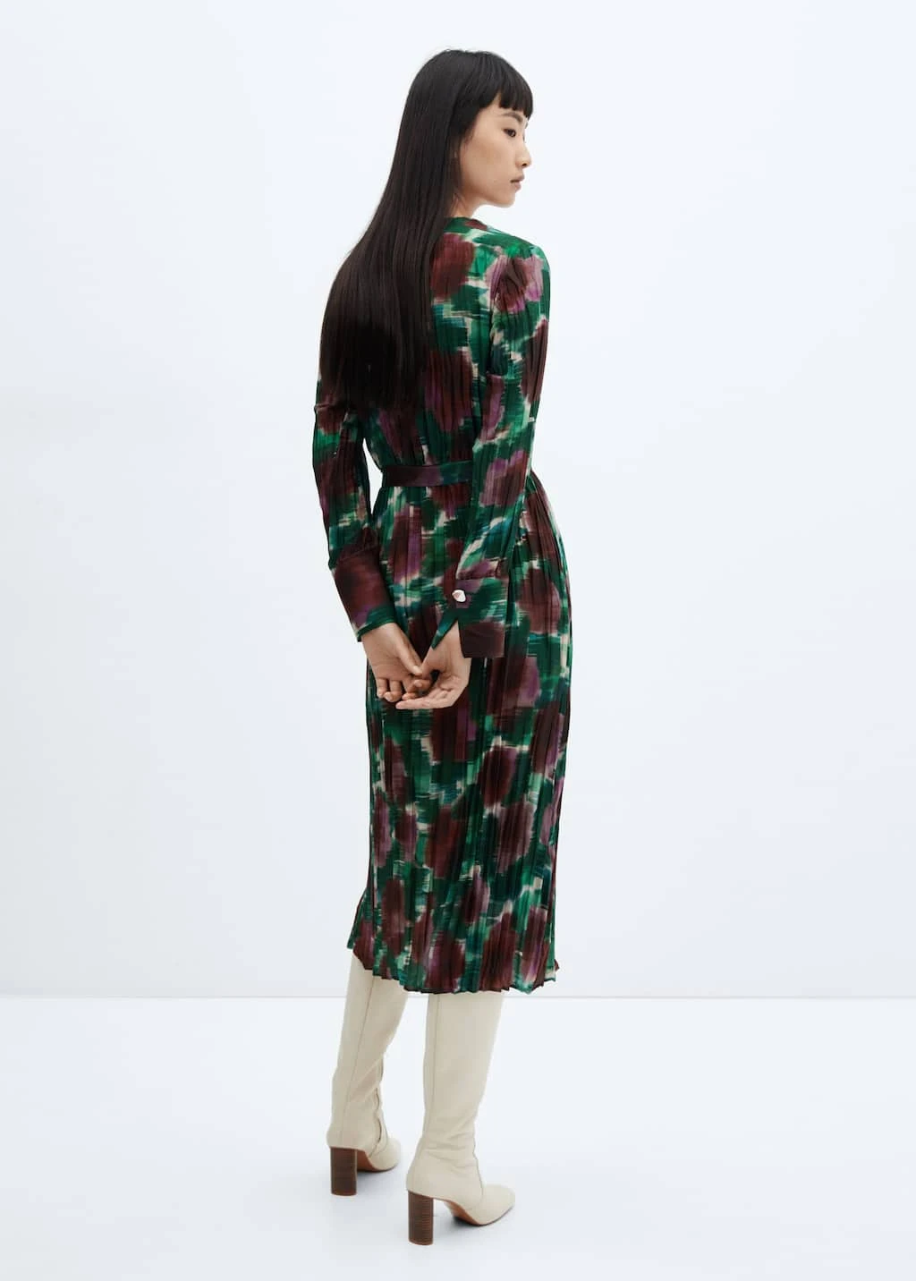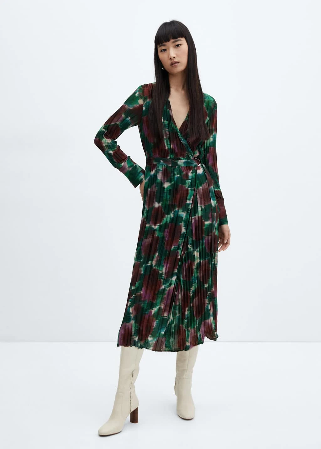 tissu fluide, coupe midi, design plisse, croise, col en v, col croise, manches longues avec poignets boutonnes, fermeture laterale, boucle reglable, disponible plusComposition: 100% polyester