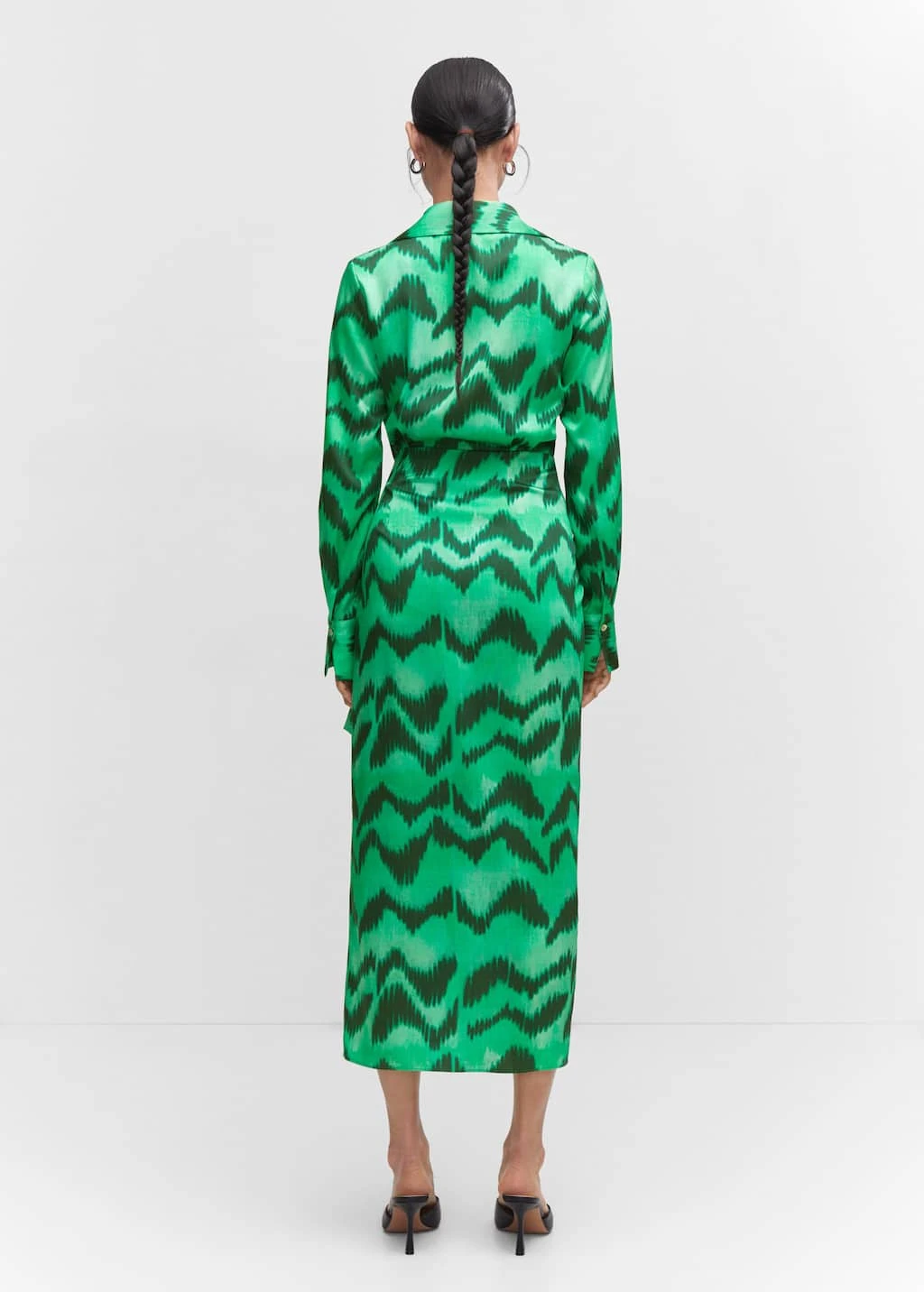 tissu satine, tissu fluide, imprime abstrait, style chemisier, coupe midi, droit, col chemise, col cache-cœur en v, manches longues avec poignets boutonnes, fermeture laterale a nœuds, disponible plus, collection fetes et ceremoniesComposition: 100% polyester