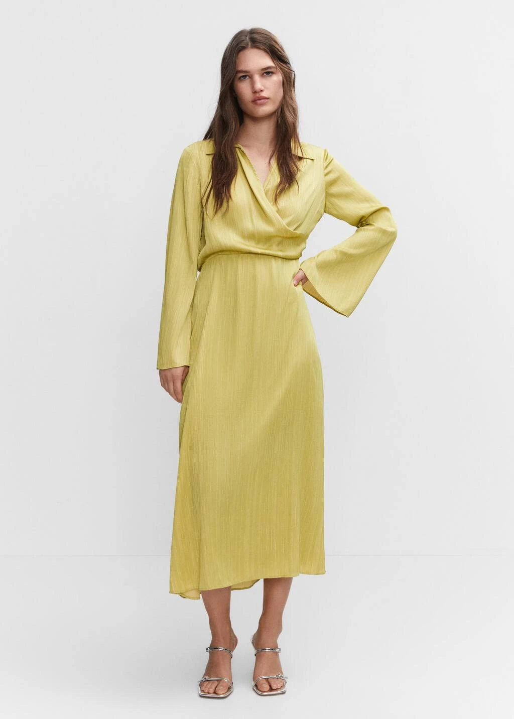 tissu fluide, tissu texture, style chemisier, coupe droite, croise, coupe midi, col chemise, manches longues cloche, sans fermeture, doublureComposition: 100% polyester. Doublure: 100% polyester