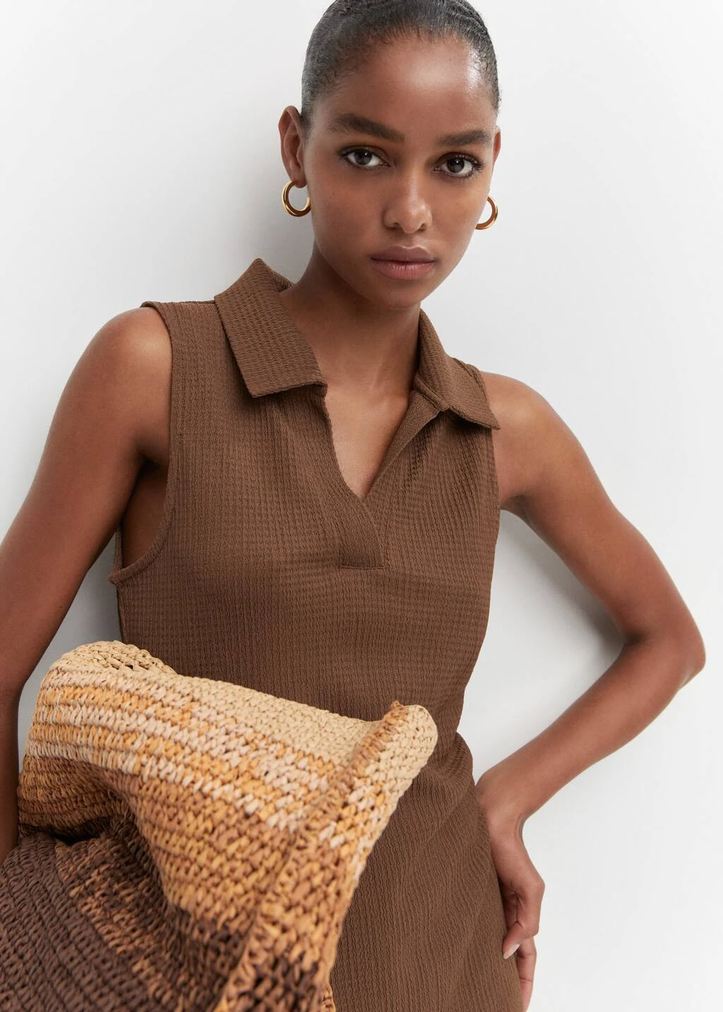 tissu elastique, coupe cintree, coupe courte, col polo, manches courtes, sans fermetureComposition: 58% polyester,40% polyester recyclé,2% elasthanne