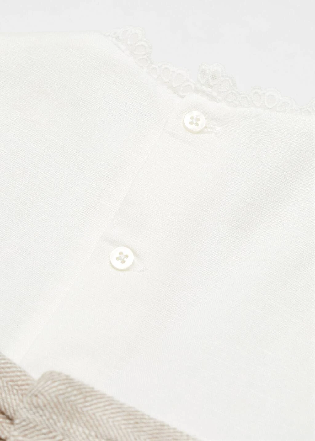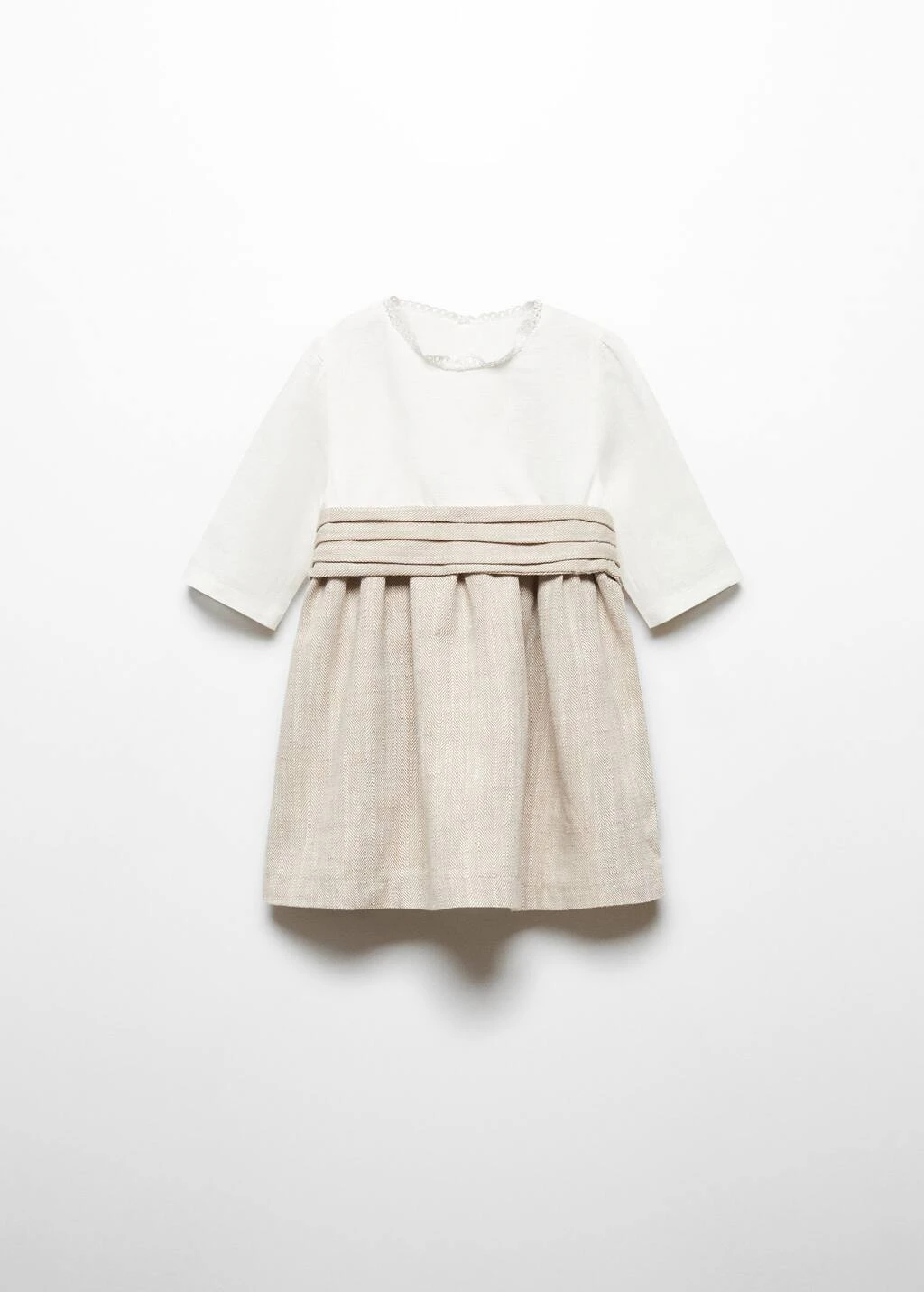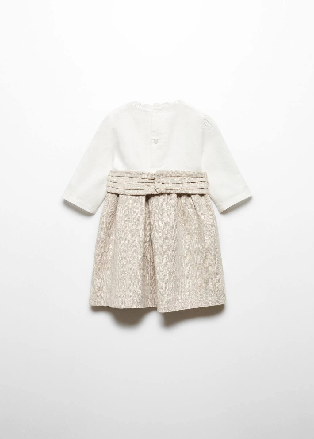 tissu de coton et lin melange, coupe courte, col rond, manches longues, fermeture boutonnee a l’arriere, collection fetes et ceremoniesComposition: 52% lin,48% coton. Doublure: 100% coton. Jupe: 50% coton,45% polyester,5% lin. NĆud: 50% coton,45% polyester,5% lin