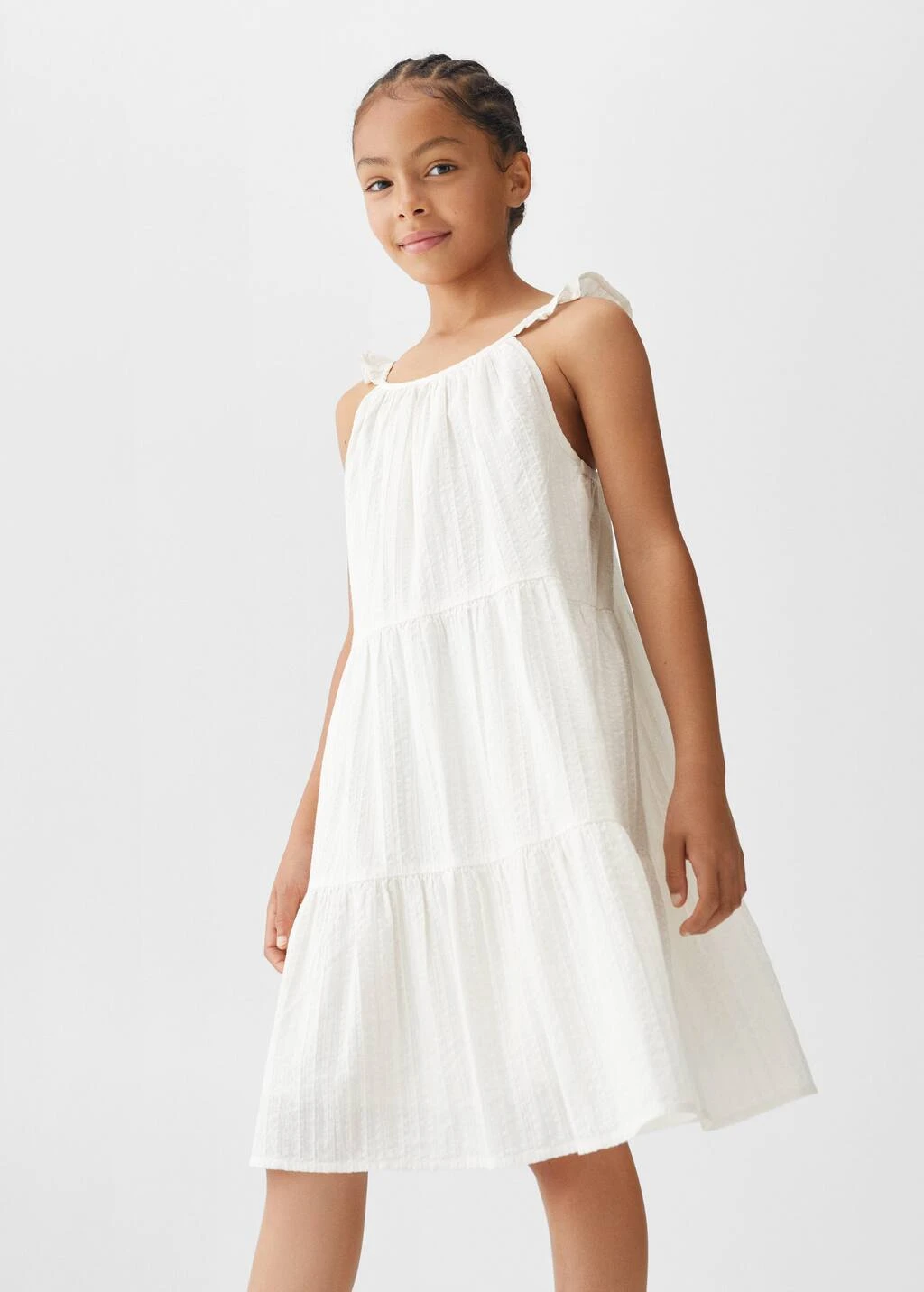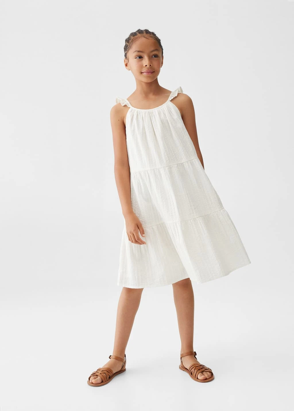 100 % coton, coupe longue, texture, elastique pour cheveux, base volantee, bretelles a volant, col rond, sans fermeture, sans manchesComposition: 100% coton. Doublure: 100% coton