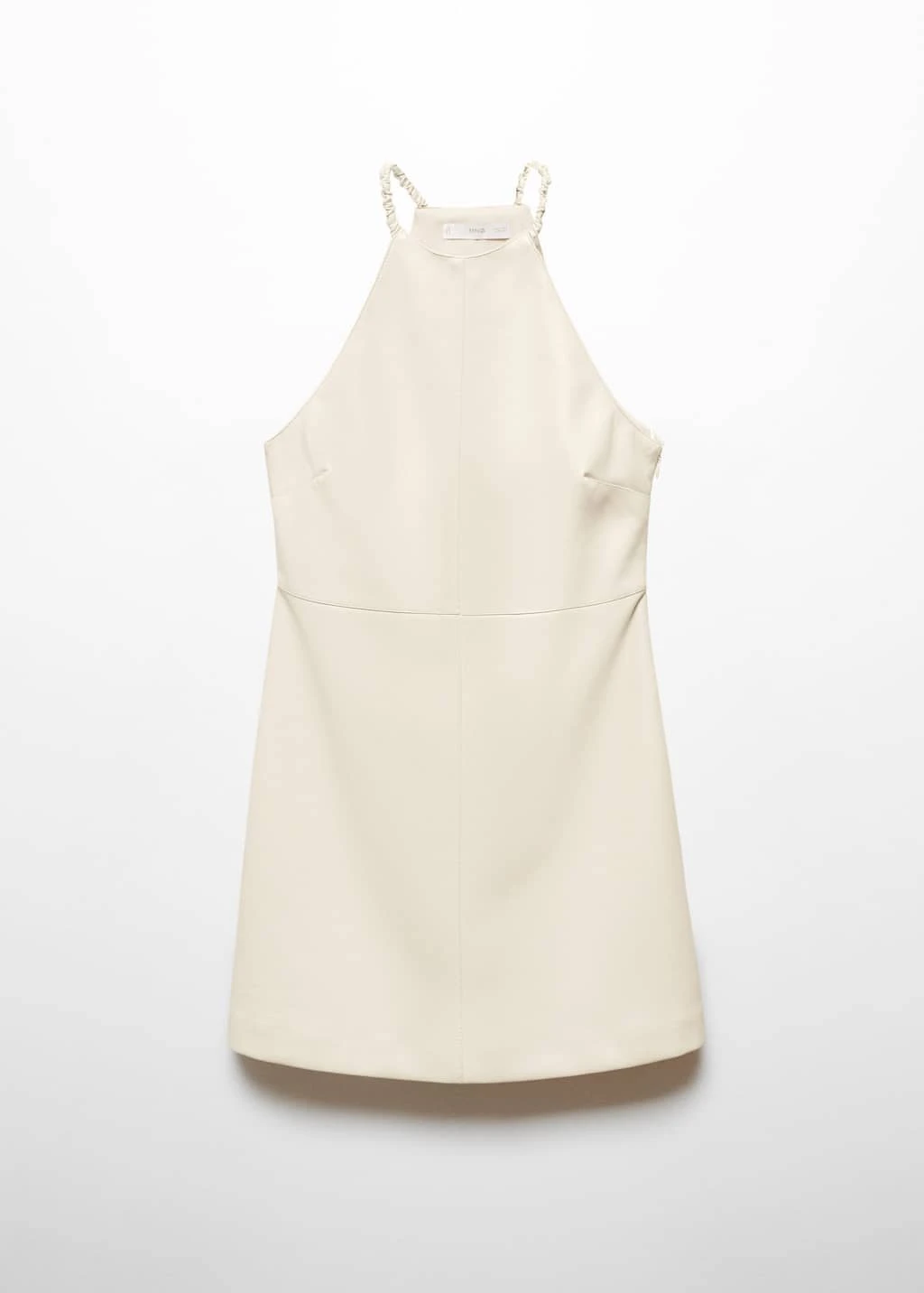 similicuir, structure lourde, coupe droite, coupe courte, emmanchures americaines, bretelles fines, sans manches, fermeture eclair laterale, doublureComposition: 100% polyester. Doublure: 100% polyester. Revêtement: 100% polyurethane