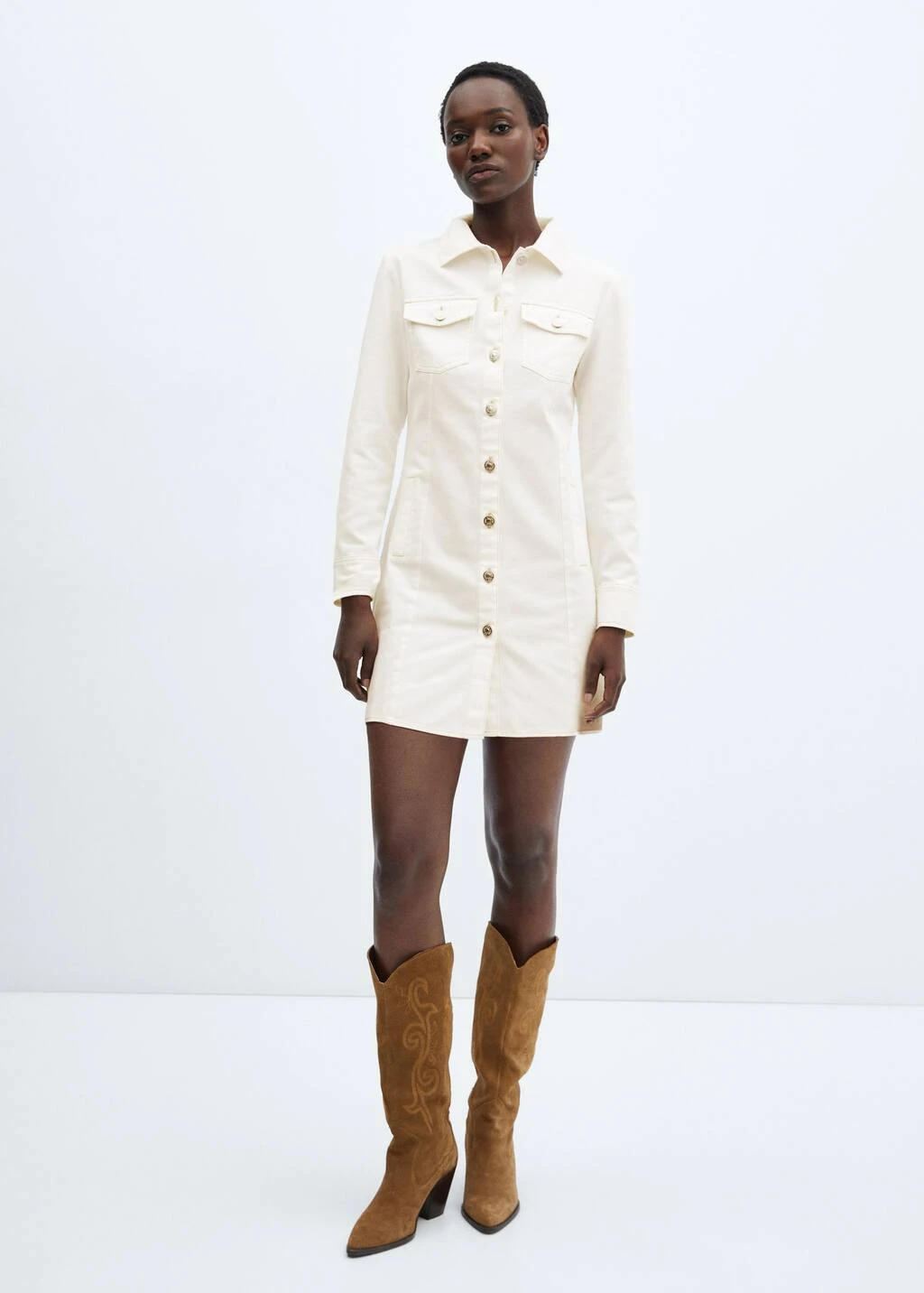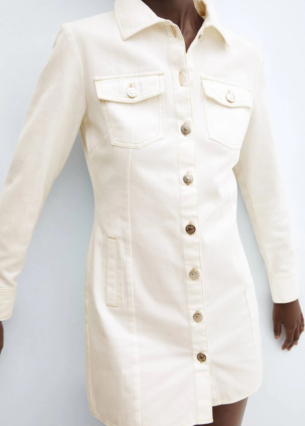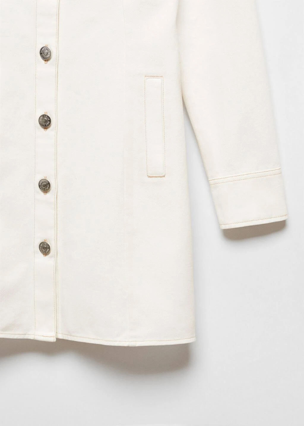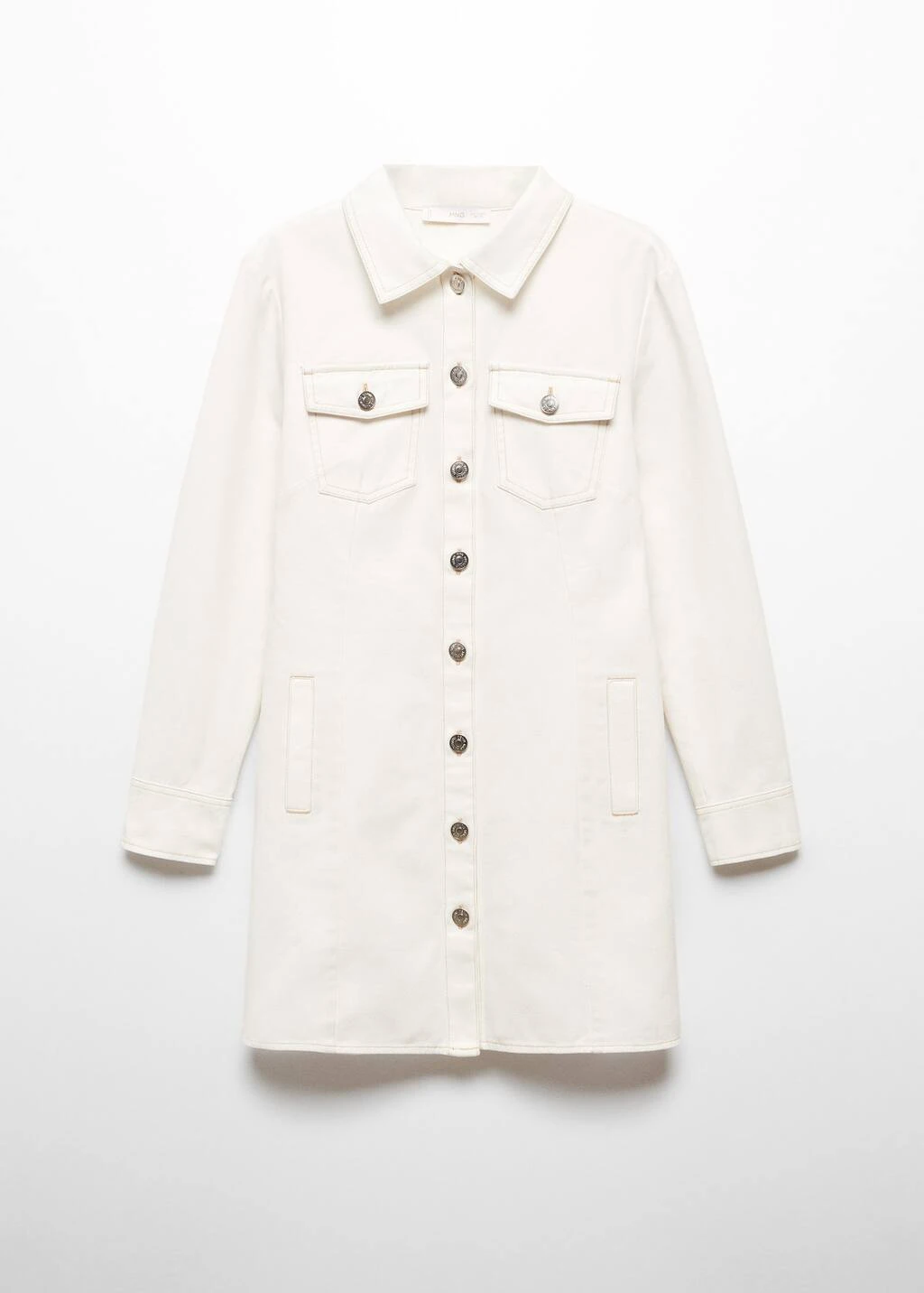 tissu en coton de style jean, coupe courte, droit, col chemise, manches longues avec poignets boutonnes, deux poches laterales, deux poches a rabat avec bouton sur la poitrine, fermeture a boutons sur le devantComposition: 100% coton