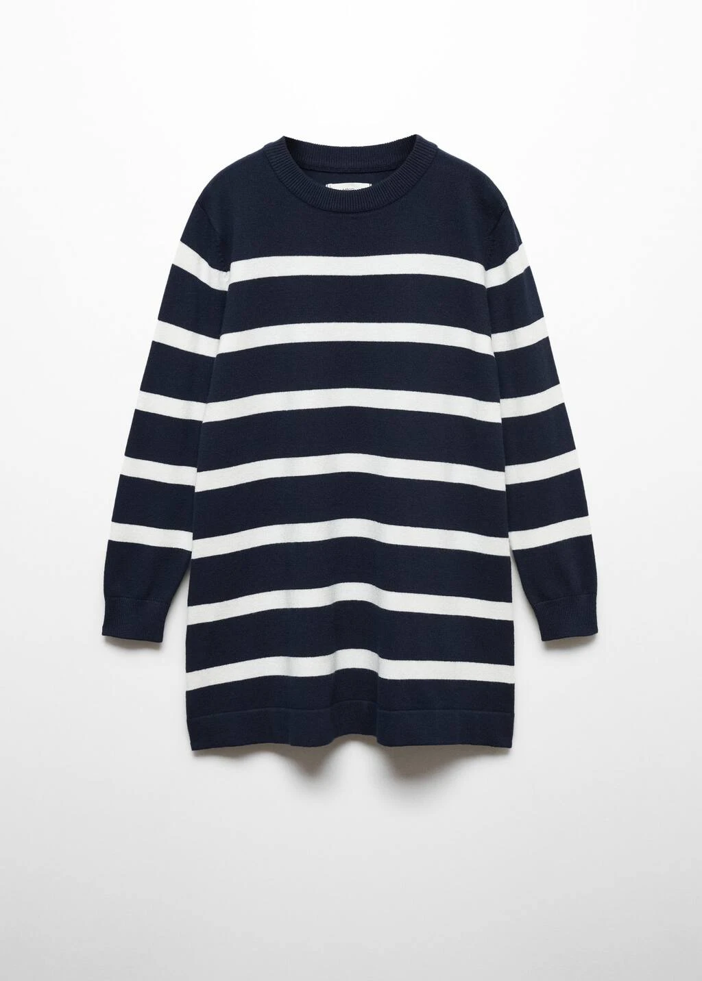 tissu en coton, tissu en maille fine, coupe longue, coupe droite, imprime rayures, col rond, manches longues, sans fermetureComposition: 70% coton,30% polyamide