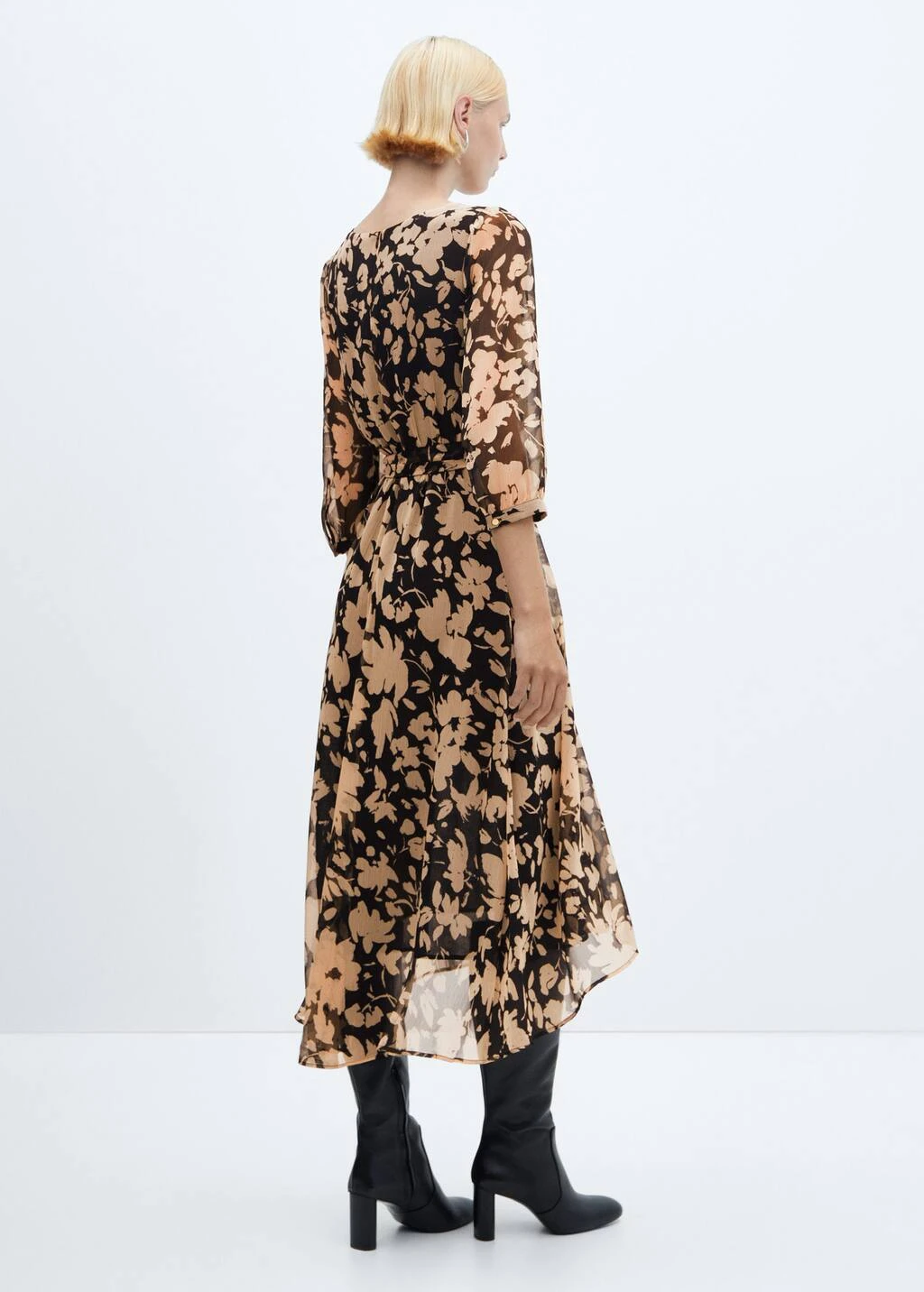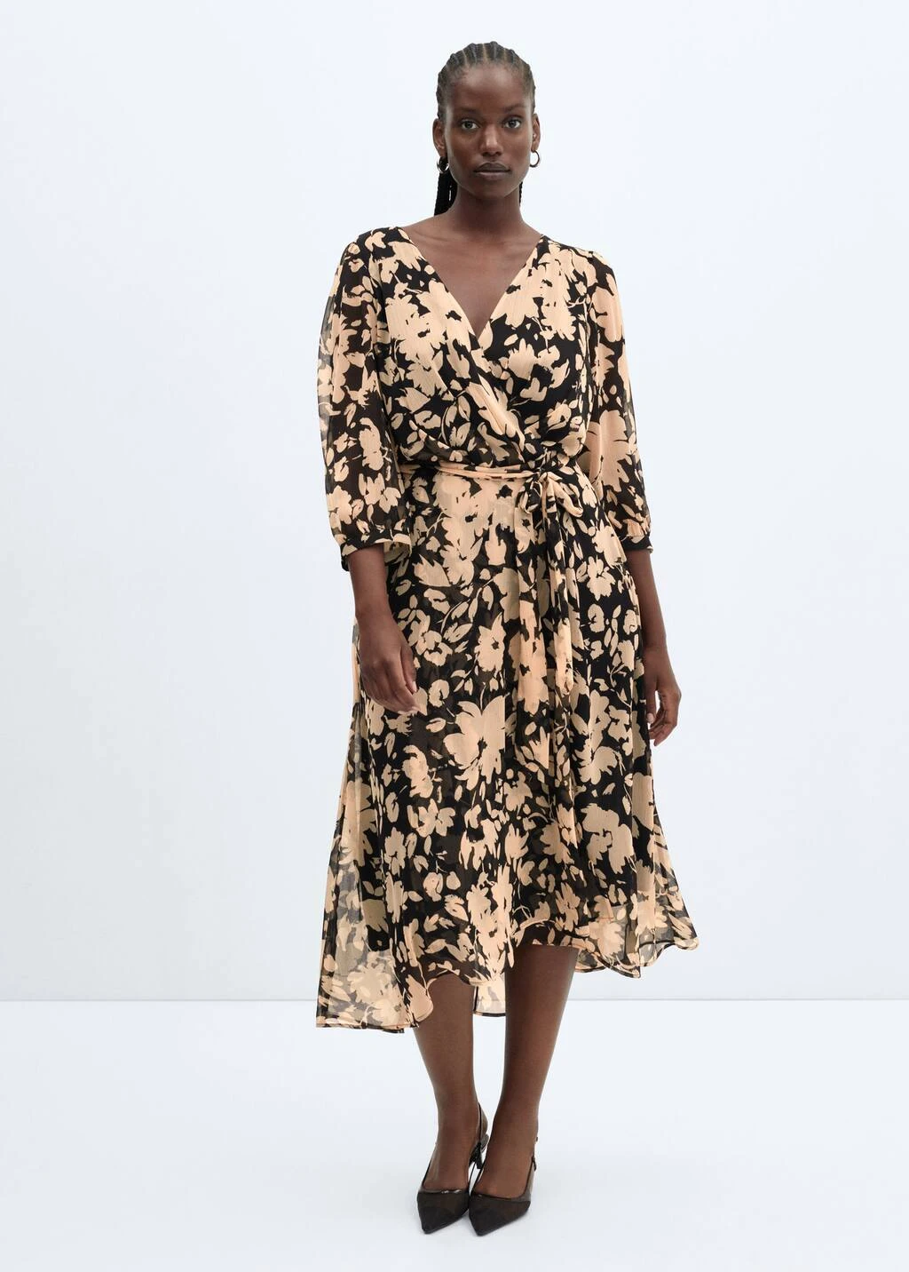 tissu fluide, coupe midi, evase, imprime fleurs, col en v, manches trois quarts, fermeture eclair a l’arriere, ruban a la taille avec fermeture a nœud, doublure, disponible plusComposition: 100% polyester. Doublure: 100% polyester