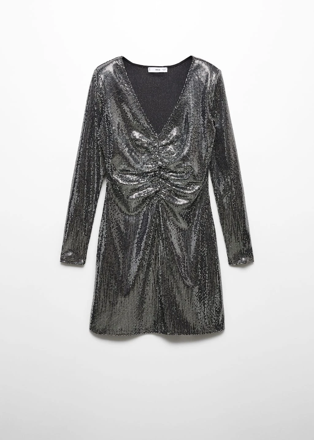 tissu fluide, coupe courte, ajuste, col en v, manches longues, sans fermeture, ornement en sequins, detail fronce, collection fetes et ceremonies.Composition: 96% polyester,4% elasthanne. Lisiere: 100% polyester. Sequin: 100% poly(téréphtalate d’éthylène)