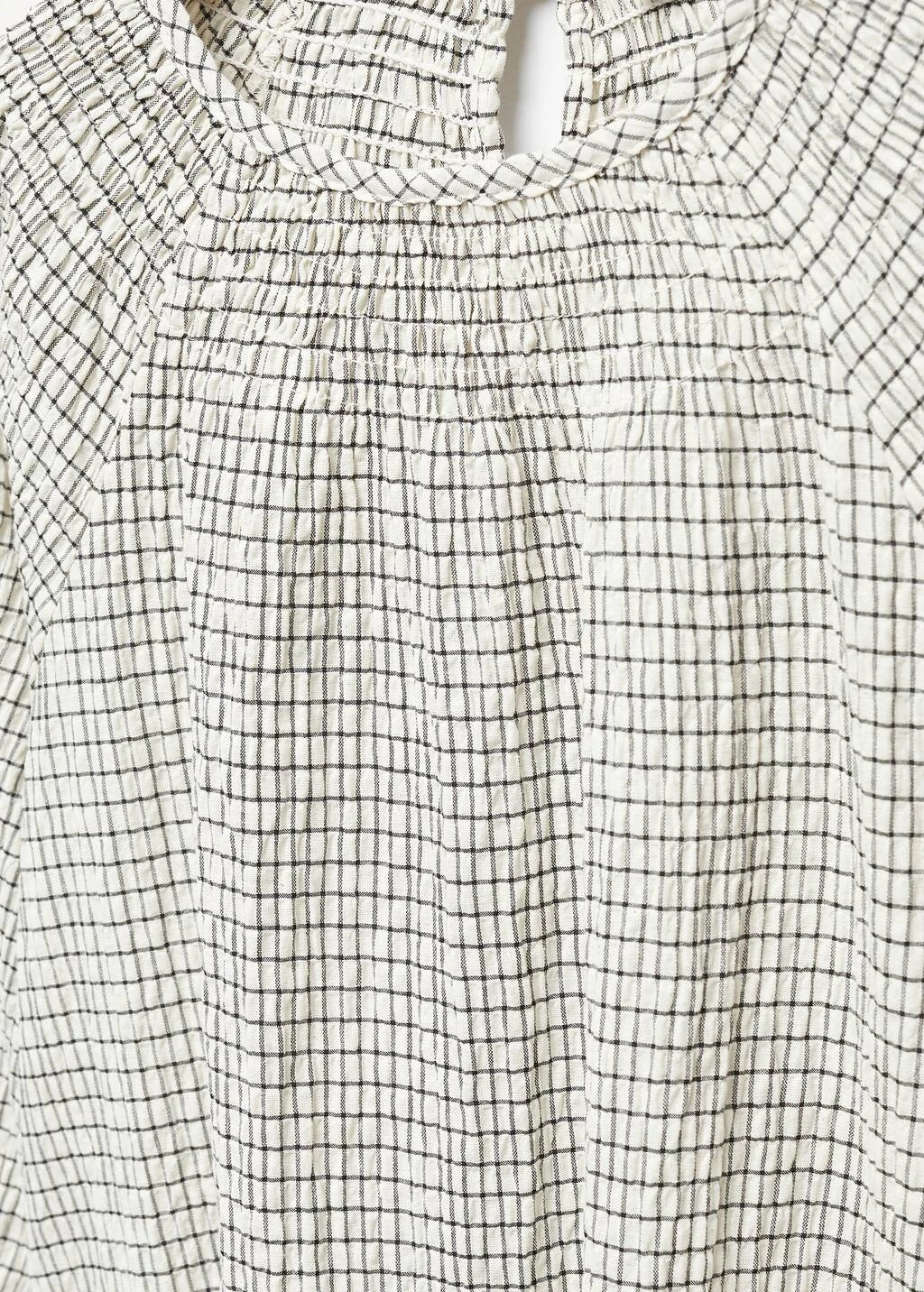 tissu en coton, imprime carreaux, coupe courte, droit, manches longues, col rond, fermeture a bouton sur le devantComposition: 83% coton,16% polyester,1% elasthanne
