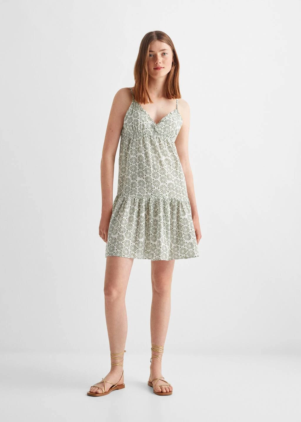 100 % coton, imprime, coupe courte, bretelles fines, base volantee, sans manches, col en vComposition: 100% coton