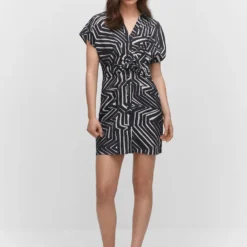 tissu en lin melange, coupe droite, coupe courte, imprime, col echancre, bretelles fines ajustables, detail fronce sur le col, nœud reglable, fermeture eclair a l’arriere, saison des festivalsComposition: 55% lin,45% viscose. Doublure: 100% coton