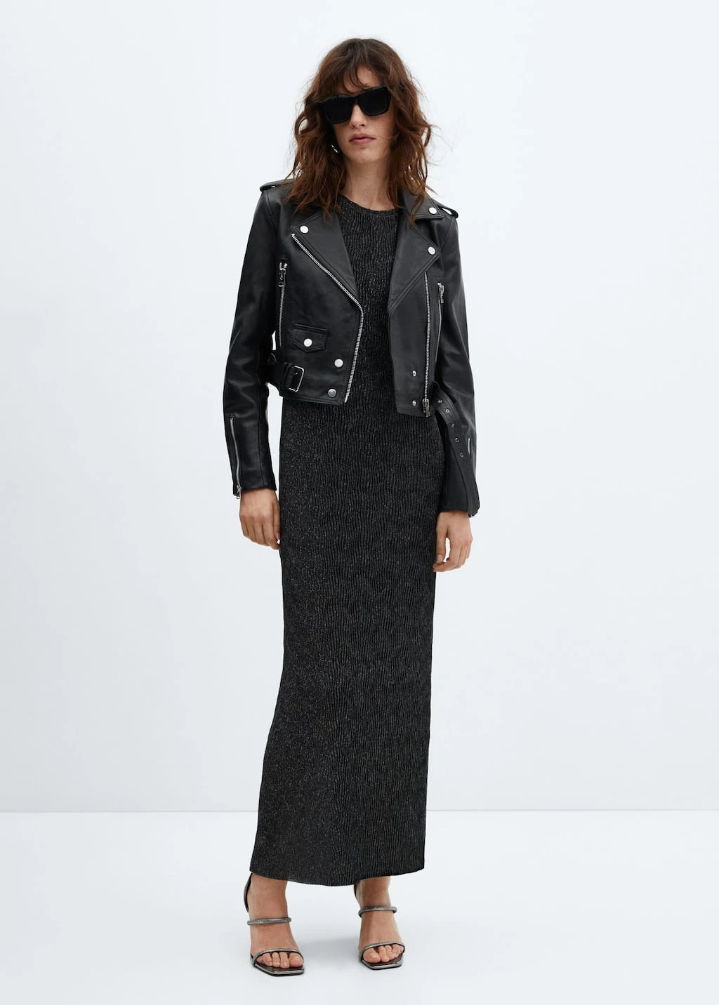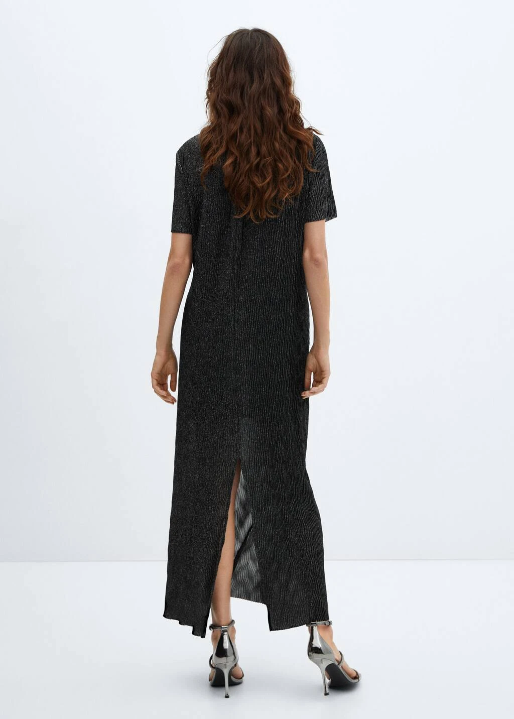 tissu lurex, coupe longue, coupe droite, manches courtes, col rond, detail d’ouverture au dos, fermeture en goutte a l’arriere, doublure, collection fetes et ceremonies.Composition: 75% polyester,25% polyester avec revêtement de cuivre. Doublure: 100% polyester