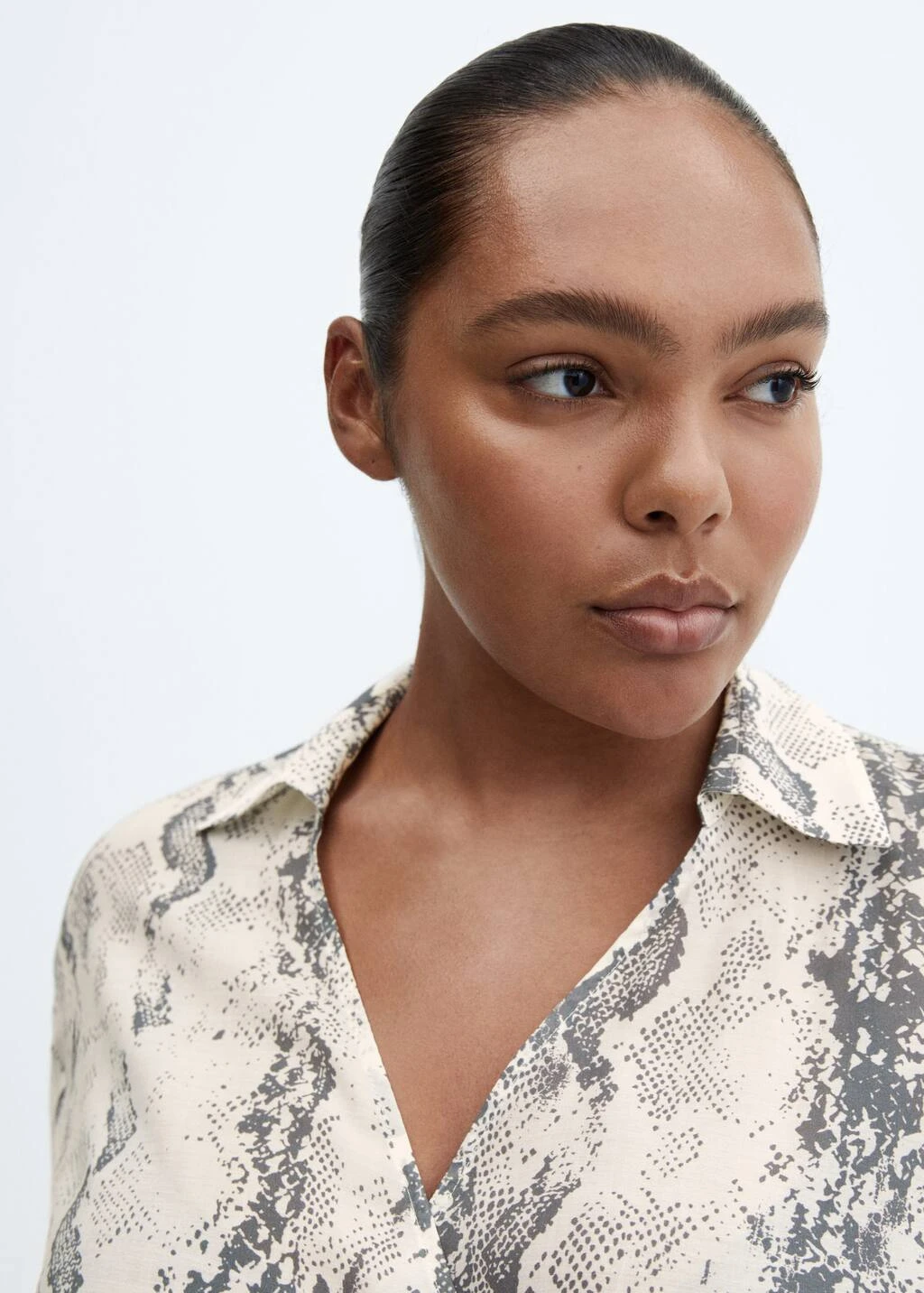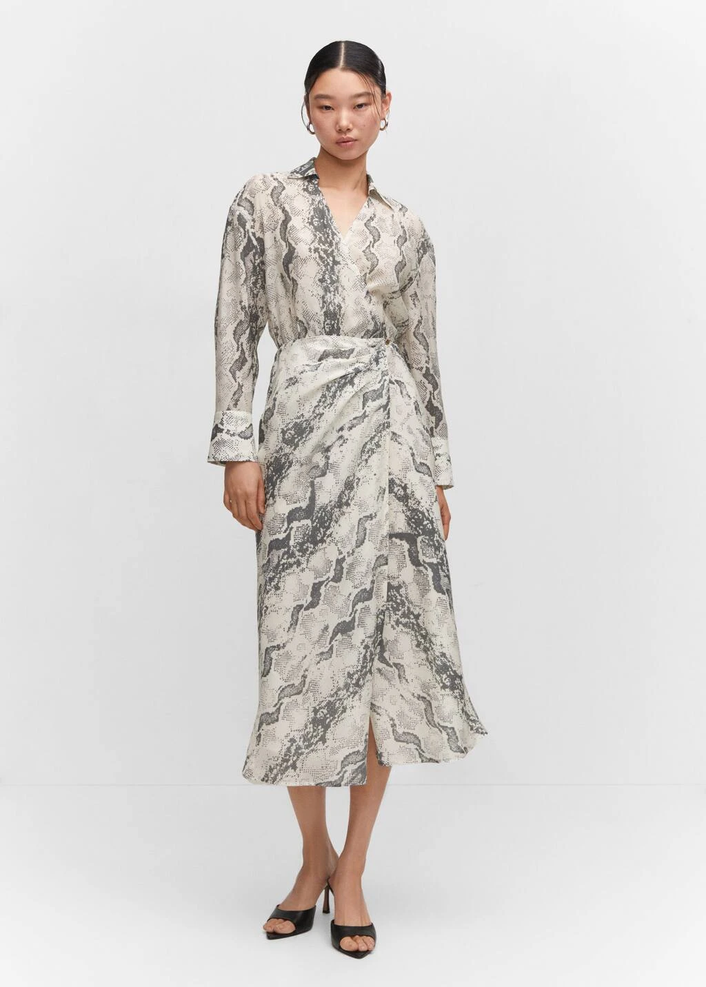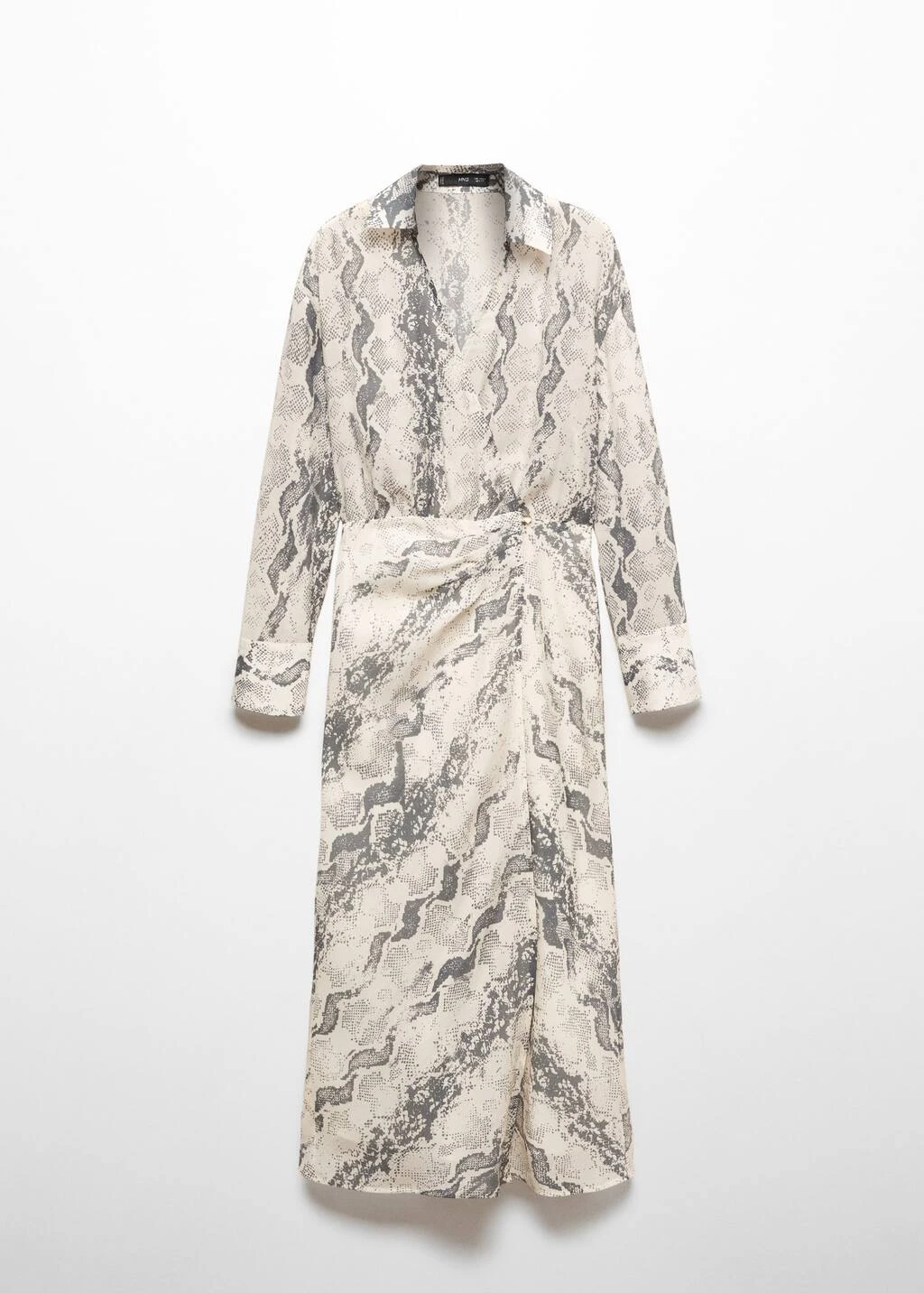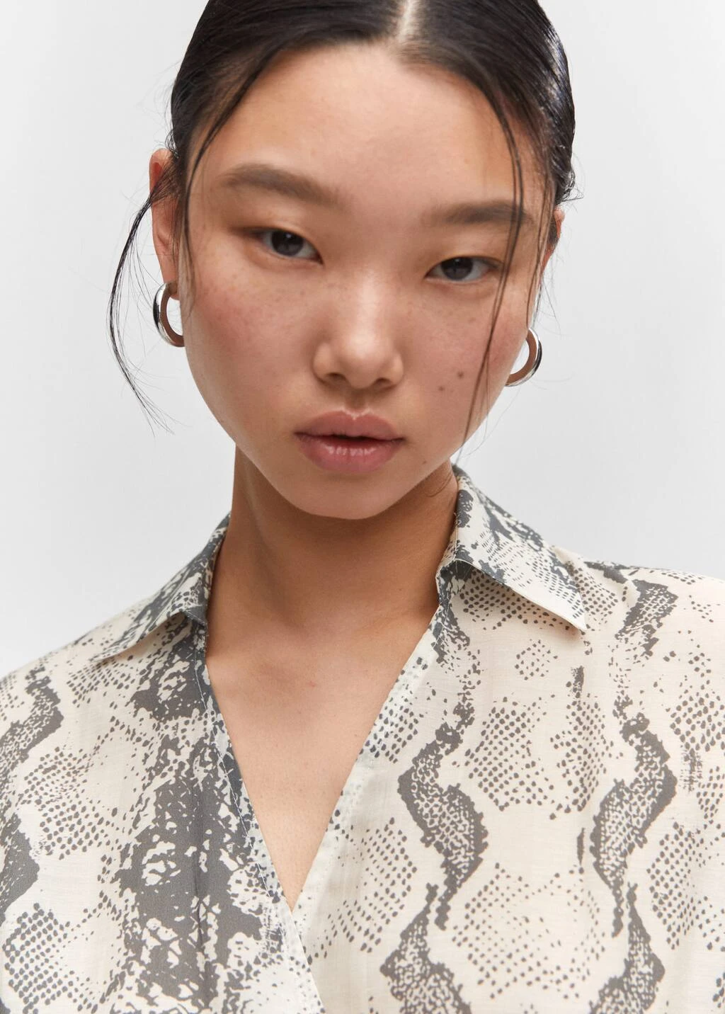 tissu avec lyocell, tissu fluide, style chemisier, croise, coupe droite, coupe longue, imprime serpent, col chemise, manches longues boutonnees, fermeture a bouton sur le coteComposition: 78% lyocell,22% polyester. Doublure: 100% coton