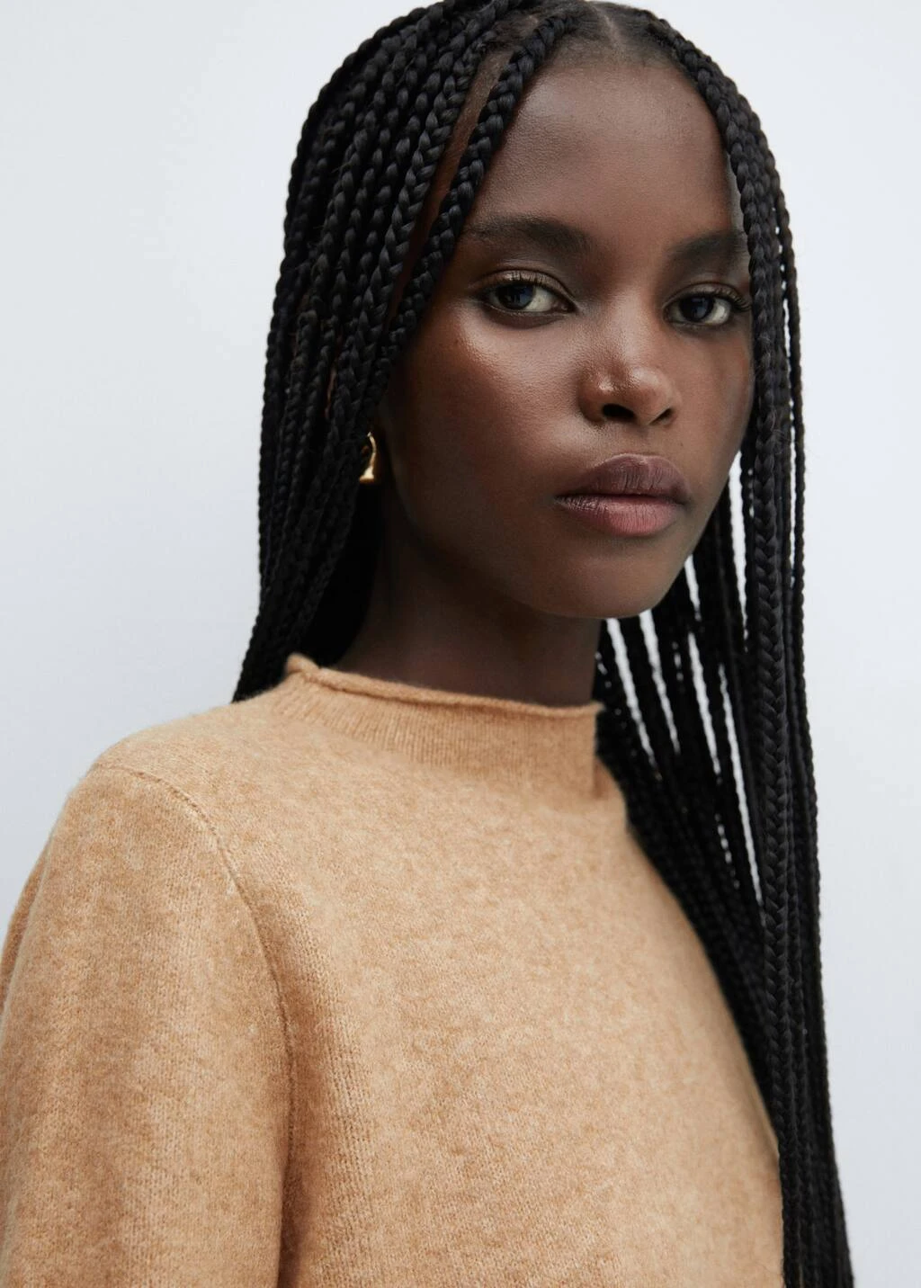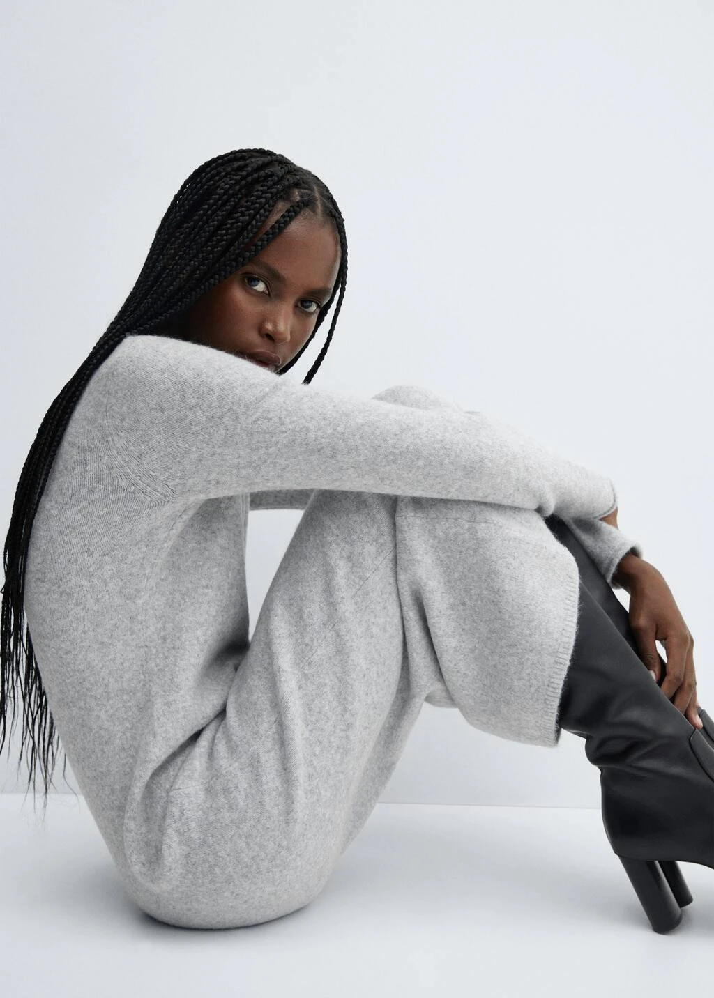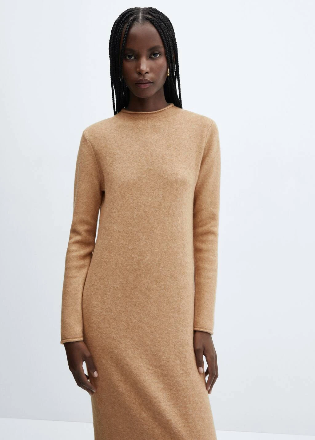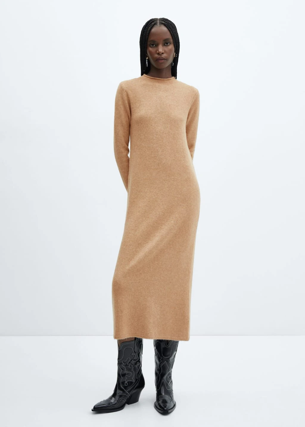tissu de laine melange, tissu en maille, coupe droite, coupe midi, col montant, manches longuesComposition: 50% acrylique,40% polyester,6% elasthanne,4% laine