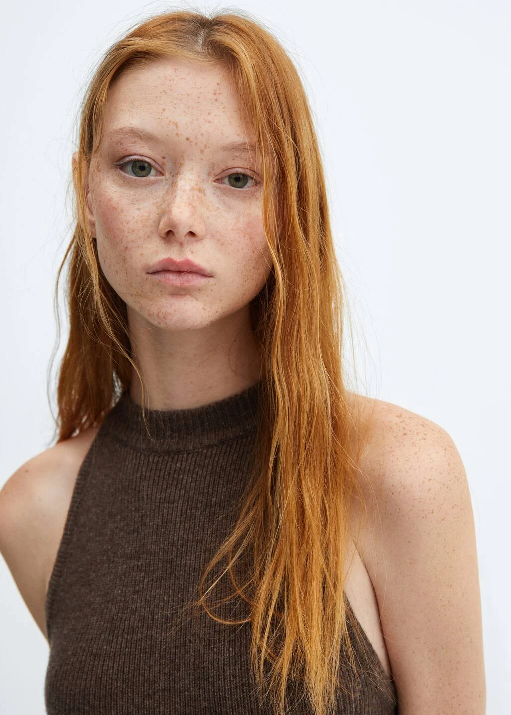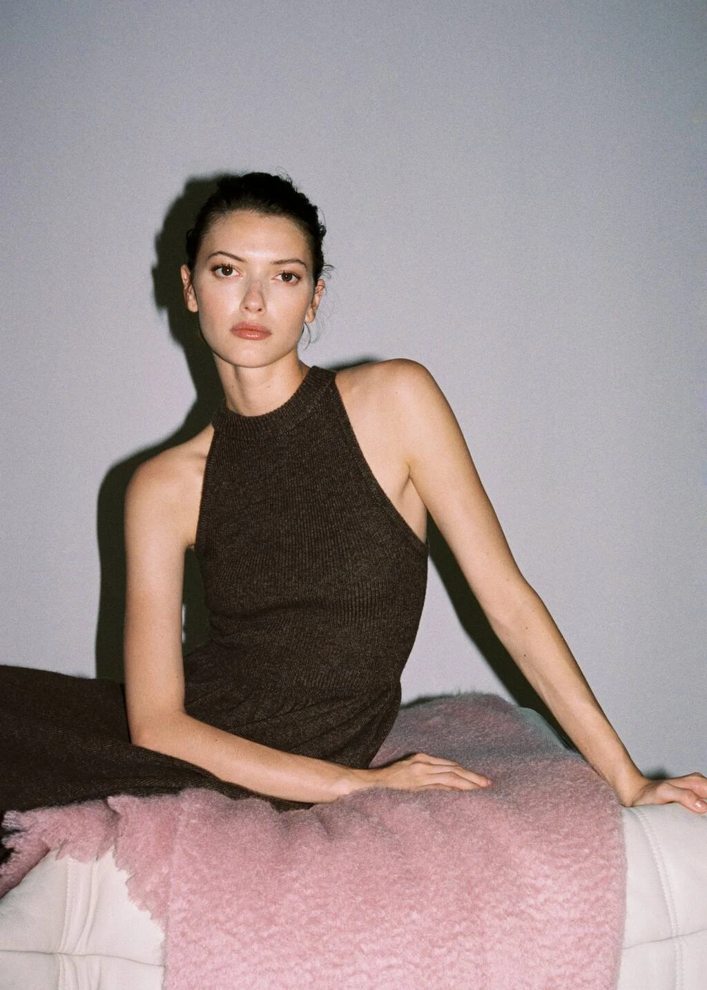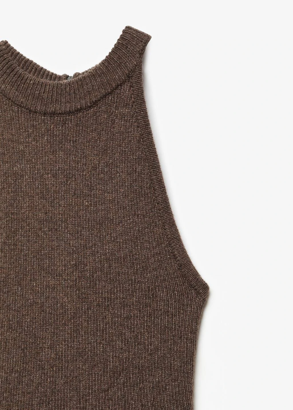 maille moyenne, coupe longue, emmanchures americaines, sans manches, fermeture eclair a l’arriereComposition: 55% polyamide,40% laine,5% cashmere