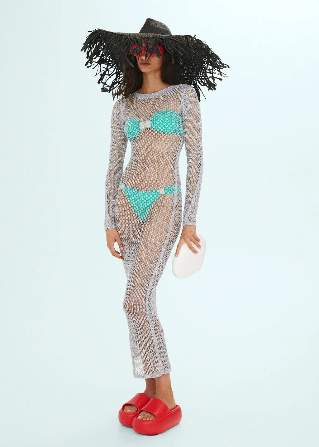 tissu en maille ajouree, effet metallise, coupe droite, coupe longue, col rond, manches longues, sans fermeture, saison des festivals, simonmiller mango : nous nous sommes associes a la marque de los angeles pour vous proposer une collection d’ete rafraichissante qui mele le meilleur des styles californien et mediterraneen. avec des tissus de qualite et des imprimes vibrants, les vetements de cette collaboration speciale debarquent dans votre dressing pour devenir vos favoris de l’ete.Composition: 51% polyester avec revêtement de cuivre,49% polyester