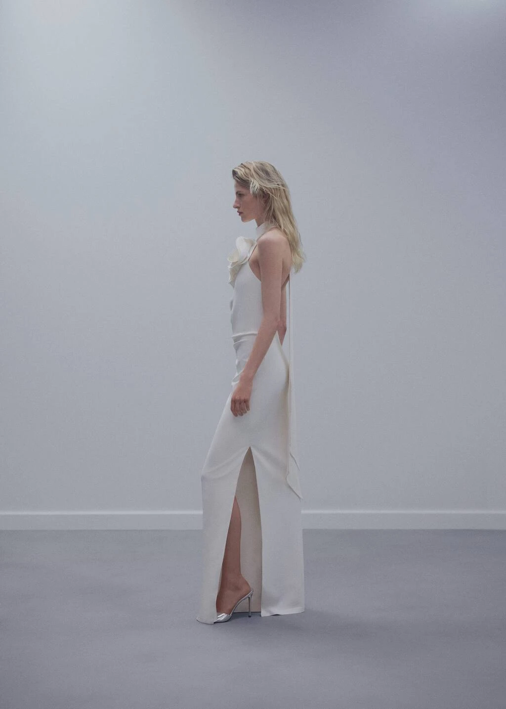 romantique et seyante : avec son design de maxi-fleurs en 3d, sa fente laterale a l’ourlet, ses emmanchures americaines et son dos nu, cette piece est le choix ideal pour les evenements de cette saison. disponible en trois couleurs intemporelles : blanc, rouge et noir, tissu fluide, tissu satine, coupe cintree, coupe longue, emmanchures americaines, detail de fleurs en 3d sur le col, encolure au dos, fente laterale, fermeture eclair a l’arriere, fabrique au portugal, short denim fleurs, collection fetes et ceremonies, capsule : une collection de vetements en edition limitee, fabriques avec les meilleurs tissus et le plus grand soin en matiere de patrons, afin d’obtenir les meilleures finitions. cette collection exclusive est concue pour les evenements et les occasions les plus chics.Composition: 49% acetate,48% viscose,3% elasthanne. Doublure: 87% polyester,13% elasthanne