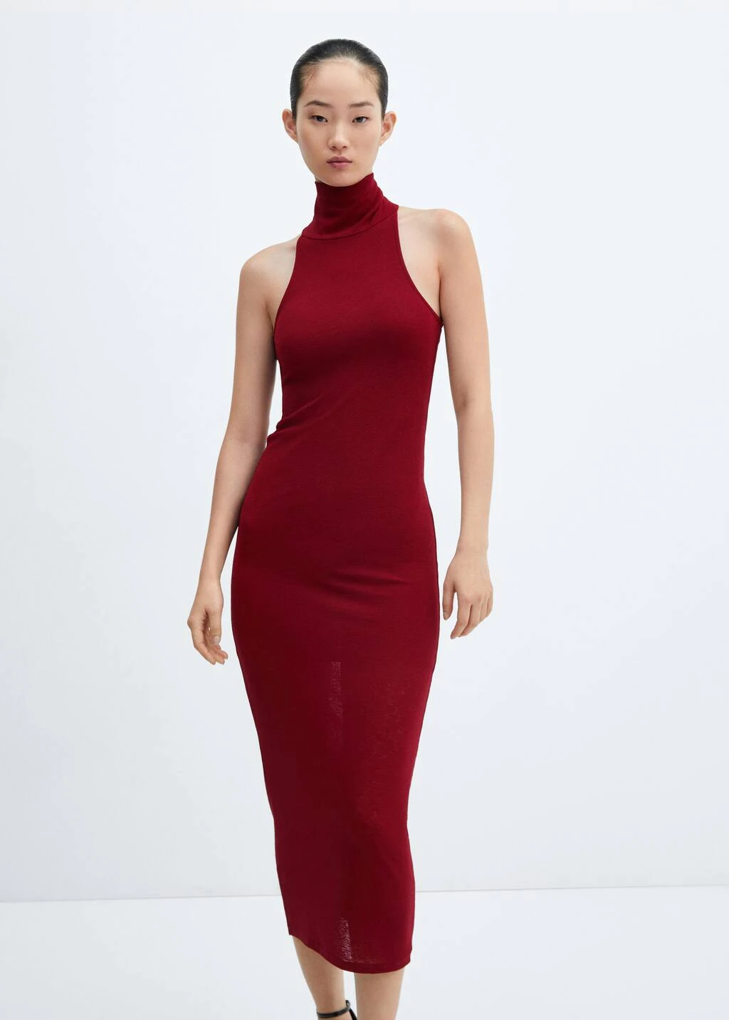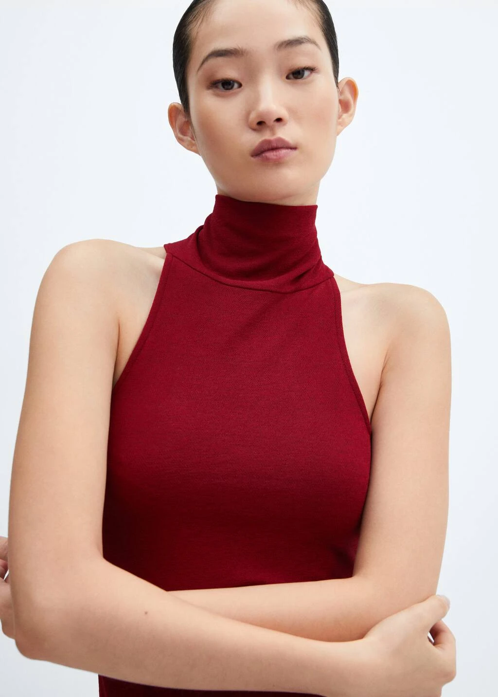 tissu fluide, coupe midi, coupe cintree, col montant, sans manches, sans fermeture, doublureComposition: 98% polyester,2% elasthanne. Doublure: 100% polyester