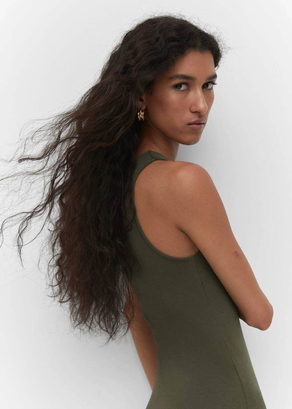 tissu en coton, ajuste, coupe midi, emmanchures americaines, bretelles larges, sans manches, sans fermetureComposition: 96% coton,4% elasthanne