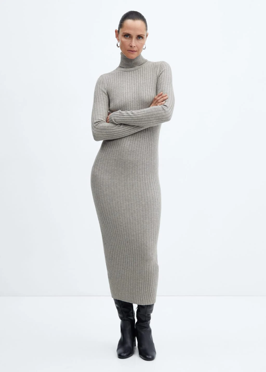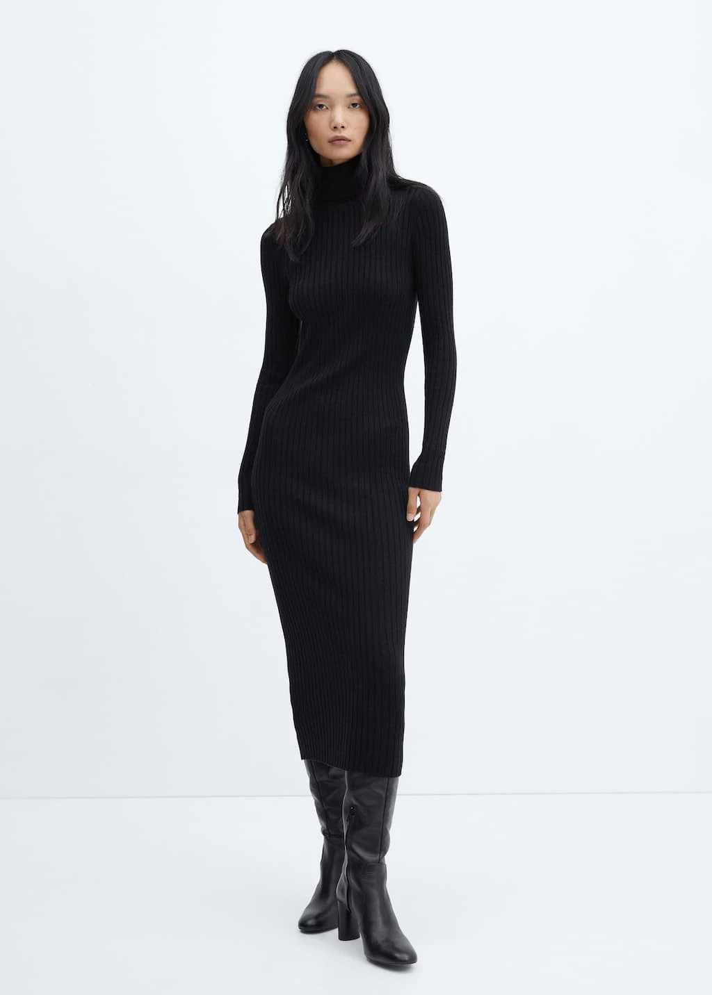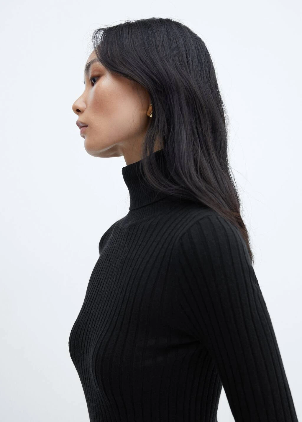 tissu en maille fine, coupe midi, ajuste, cotele, col montant, manches longues, sans fermetureComposition: 50% viscose,28% polyester,22% polyamide