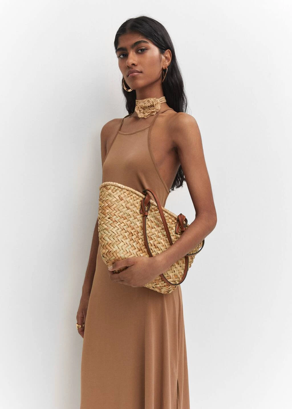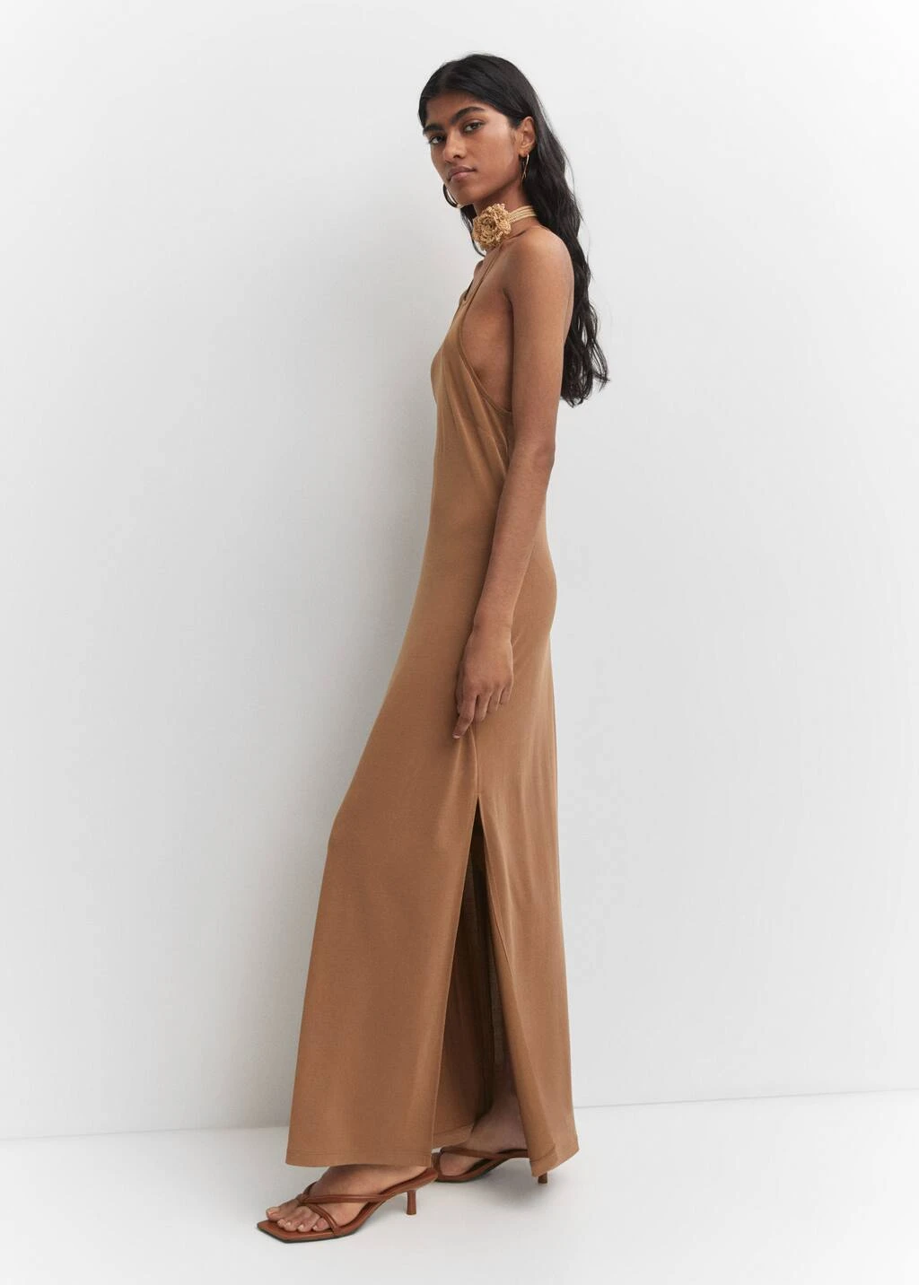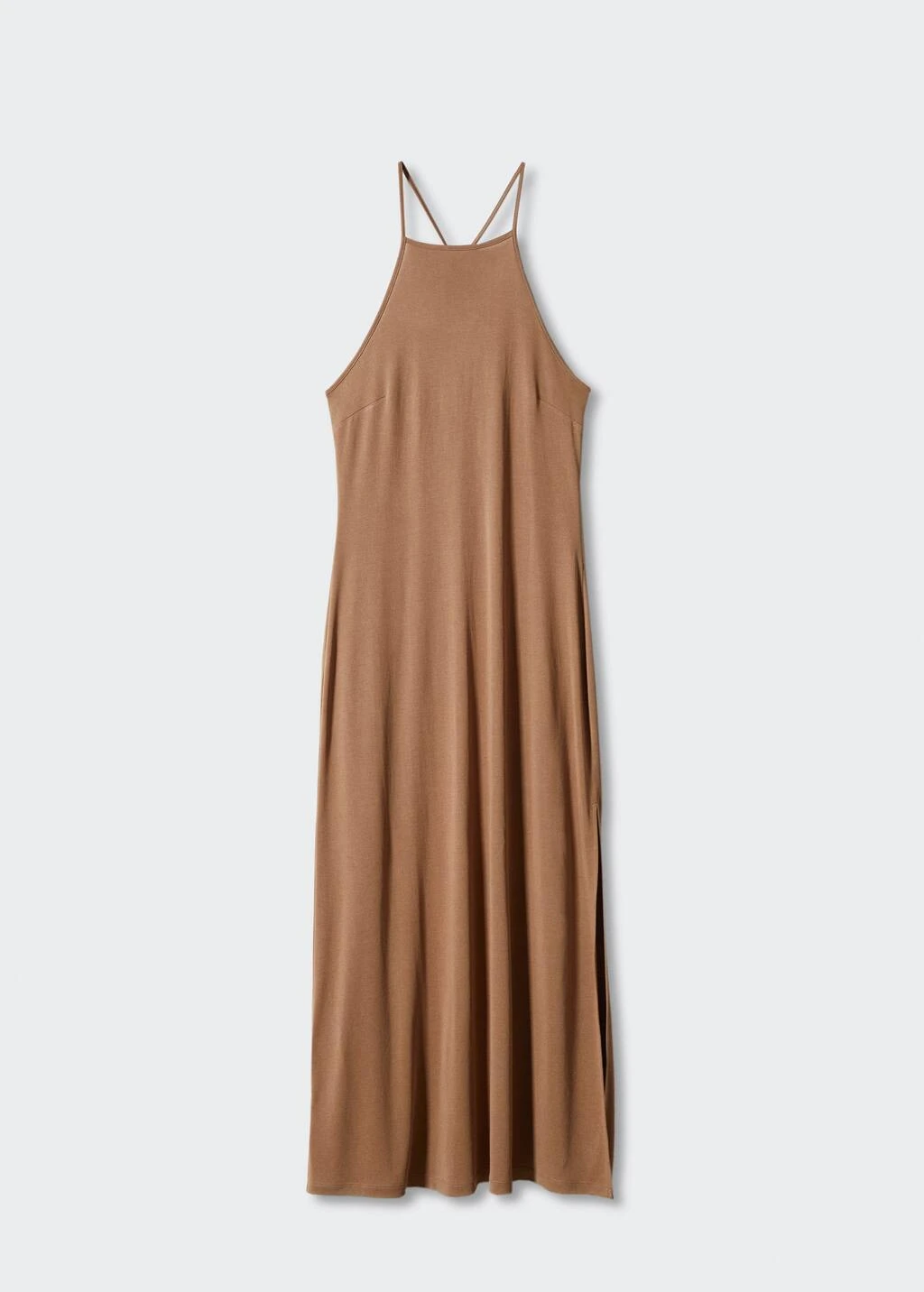 tissu en modal melange, coupe droite, coupe longue, emmanchures americaines, bretelles fines, bretelles croisees dans le dos, sans fermeture, fente lateraleComposition: 66% modal,34% polyester