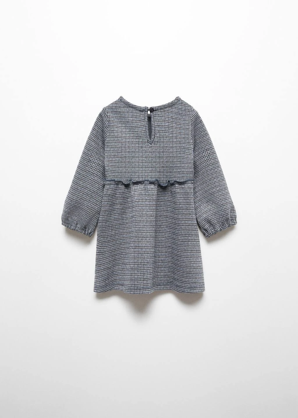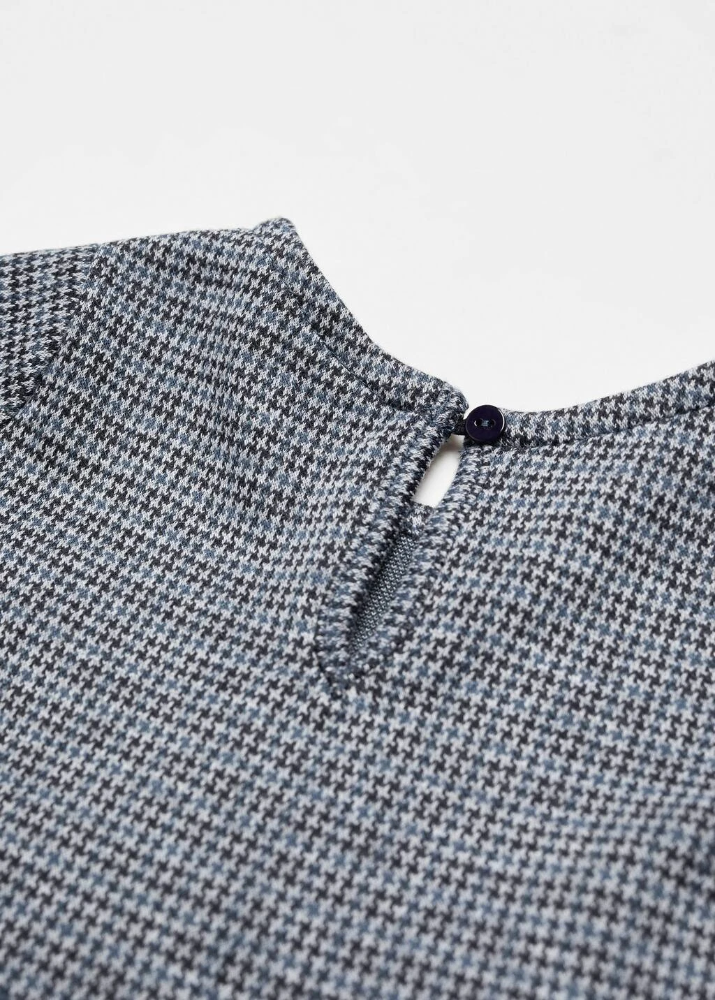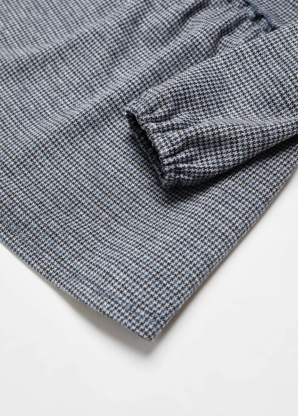 pied-de-poule, coupe courte, droit, col rond, manches longues, fermeture arriereComposition: 88% polyester,10% viscose,2% elasthanne