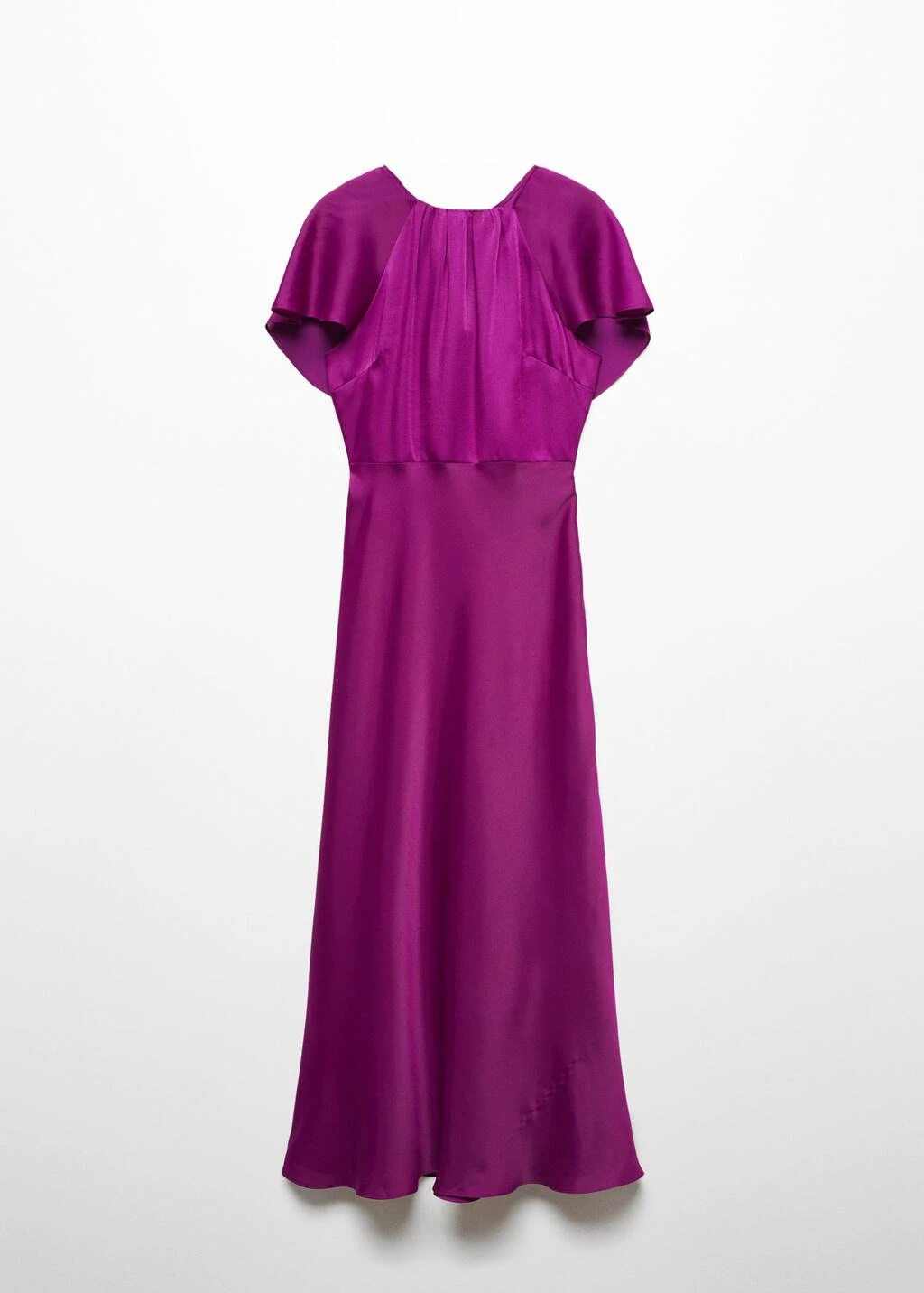 tissu satine, tissu fluide, coupe droite, coupe longue, col rond, manches courtes, encolure au dos, detail nœudComposition: 50% polyester,50% viscose