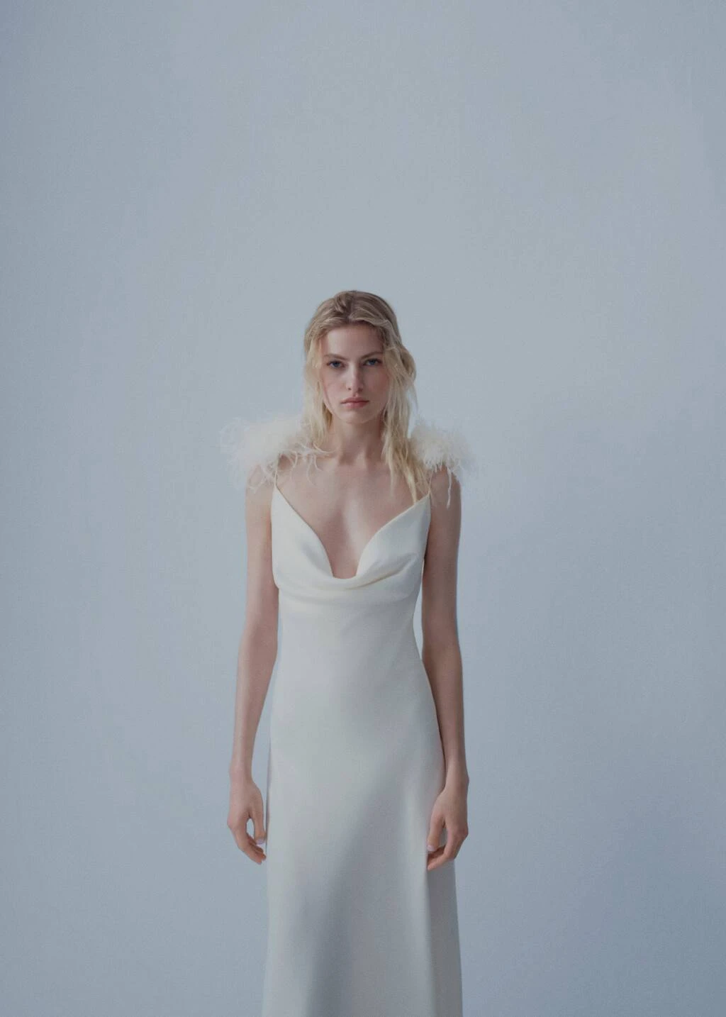 la piece de style lingerie a finition satinee est un choix parfait pour une occasion speciale. ses bretelles a plumes et son col benitier la rendent unique, sophistiquee et elegante., tissu fluide avec finition satinee, coupe cintree, evase, bretelles a plumes, col drape, bretelles fines, fermeture eclair laterale, fabrique au maroc, il est conseille d’aerer le vetement pour eviter que les plumes ne perdent leur volume, nous conseillons de ne repasser que sur l’envers et d’eviter de repasser l’encolure et la partie des hanches, short denim fleurs, collection fetes et ceremonies, capsule : une collection de vetements en edition limitee, fabriques avec les meilleurs tissus et le plus grand soin en matiere de patrons, afin d’obtenir les meilleures finitions. cette collection exclusive est concue pour les evenements et les occasions les plus chics.Composition: 100% viscose. Doublure: 100% polyester