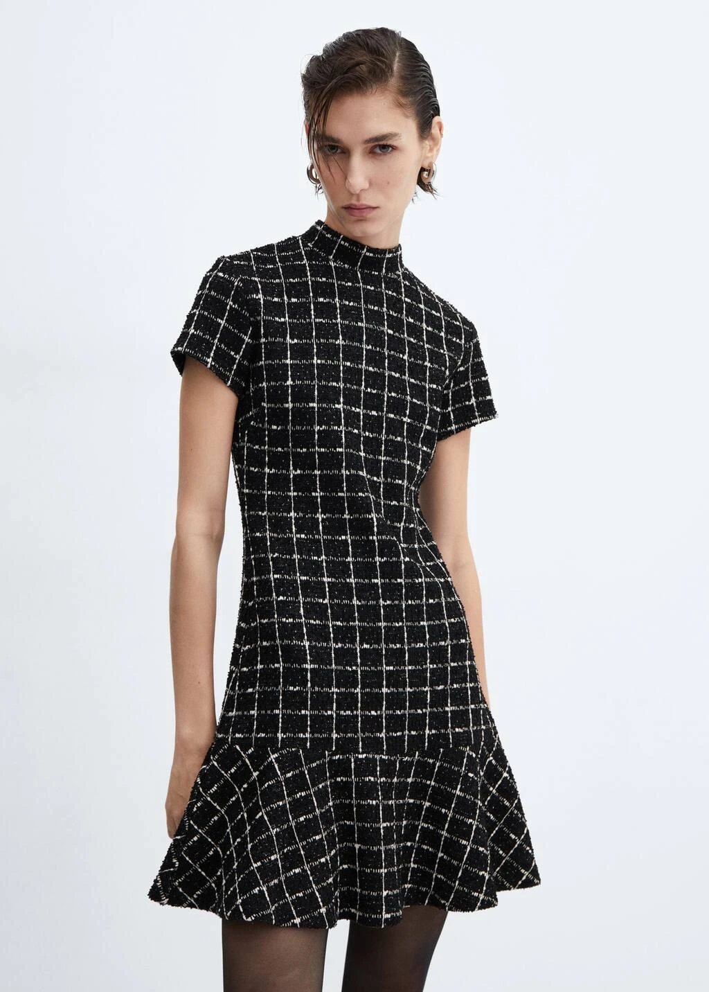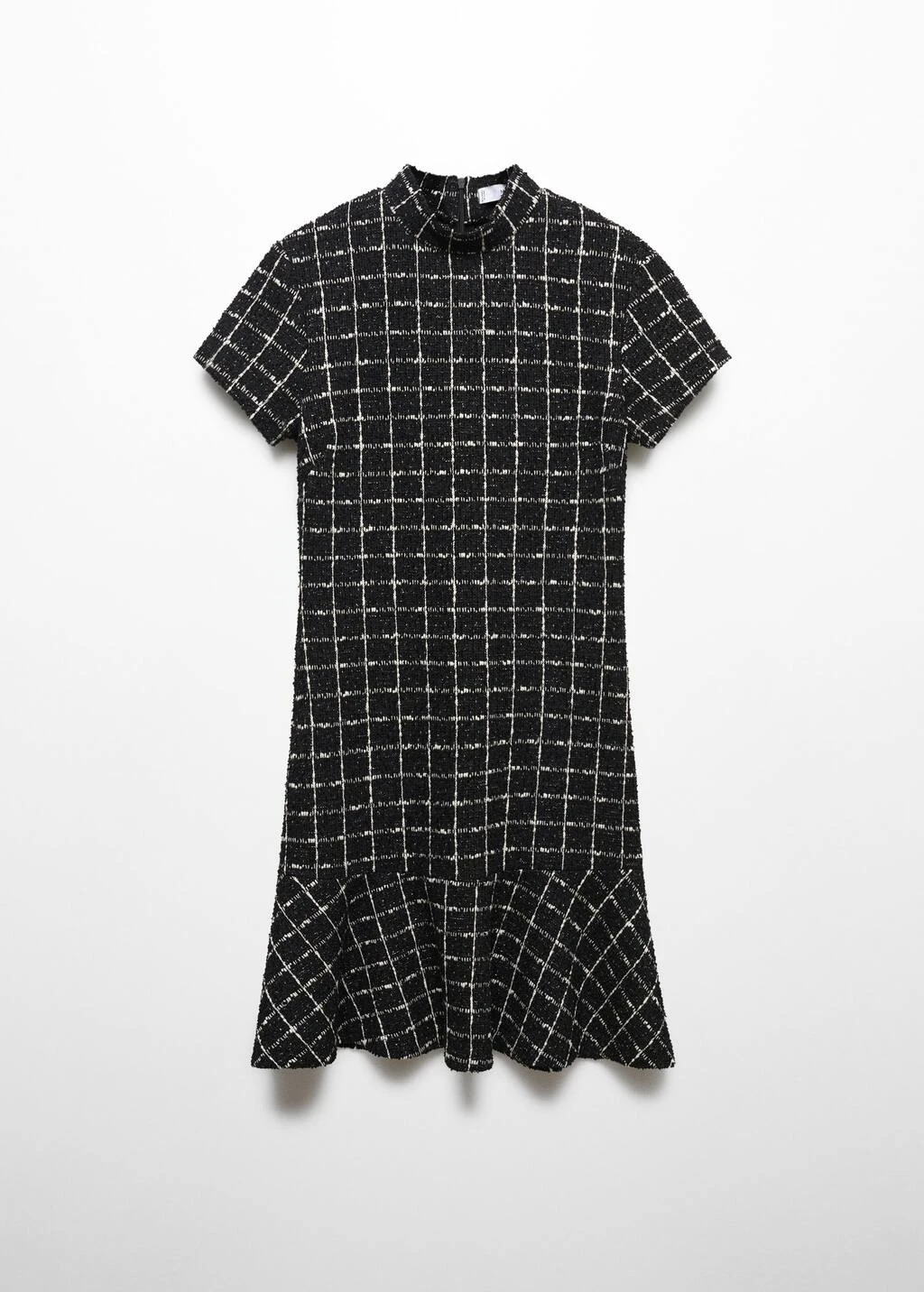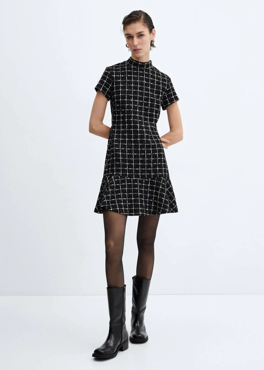 tissu de coton melange, tissu tweed, coupe courte, coupe droite, imprime carreaux, col roule, manches courtes, fermeture eclair a l’arriereComposition: 72% polyester,28% coton