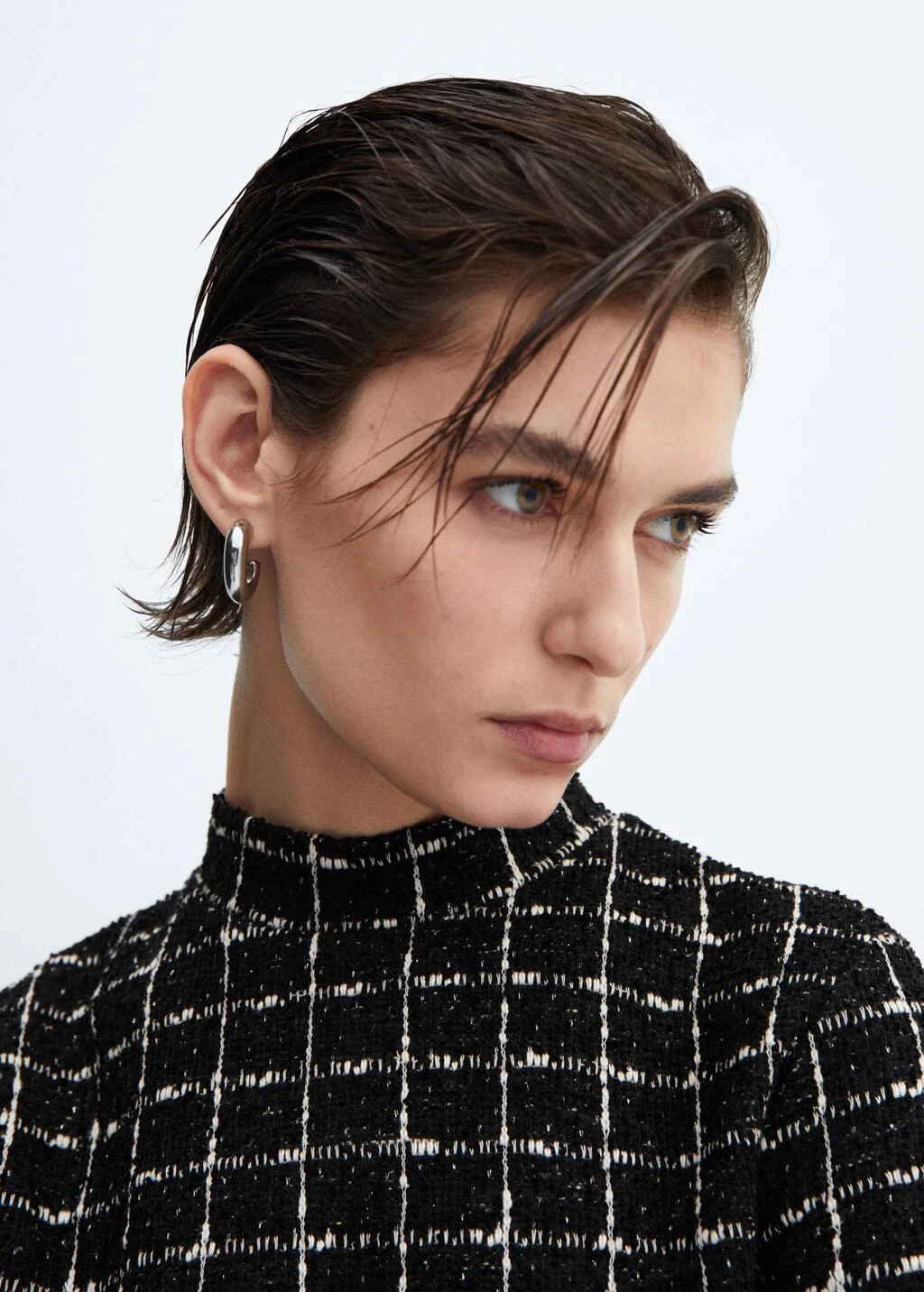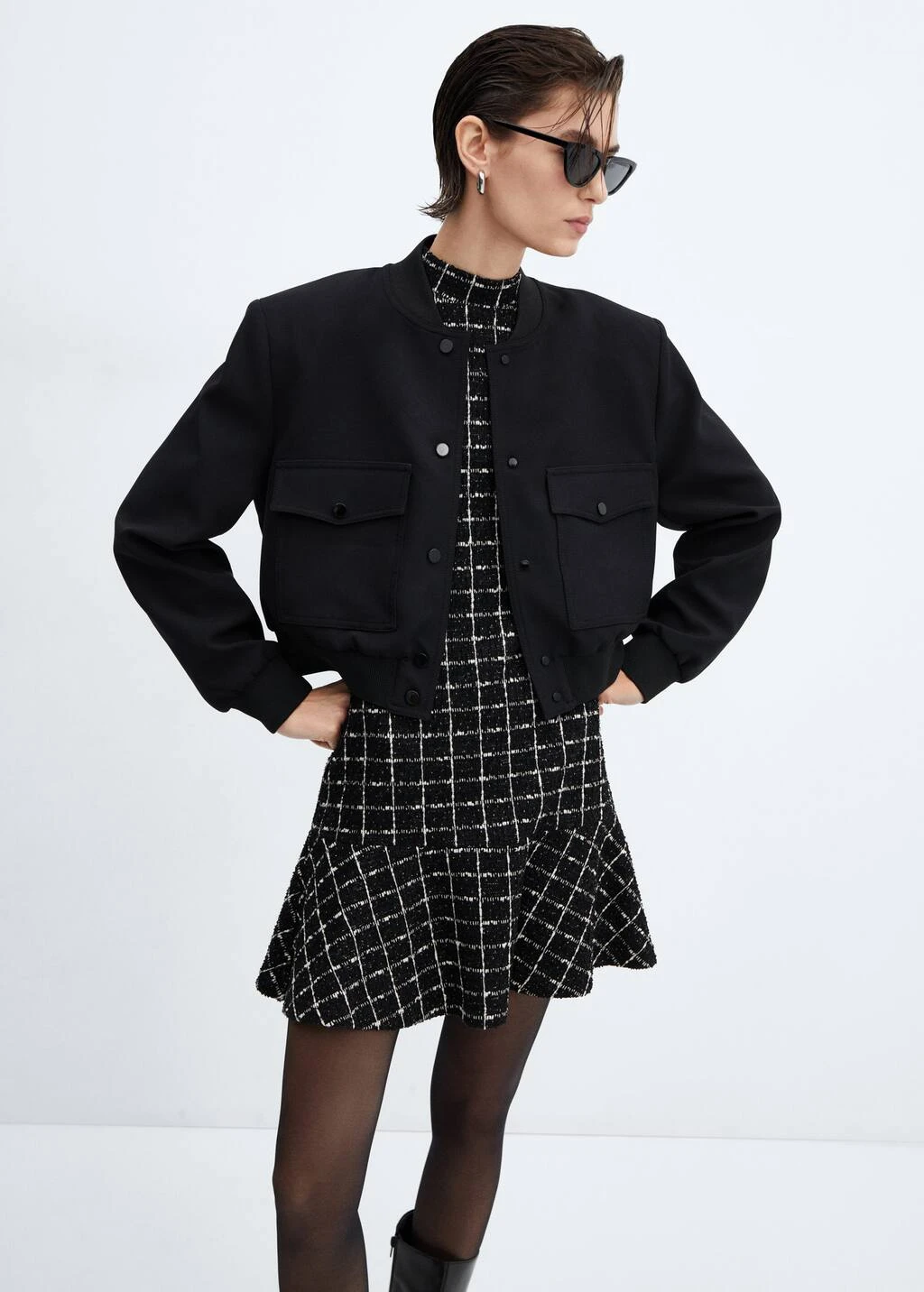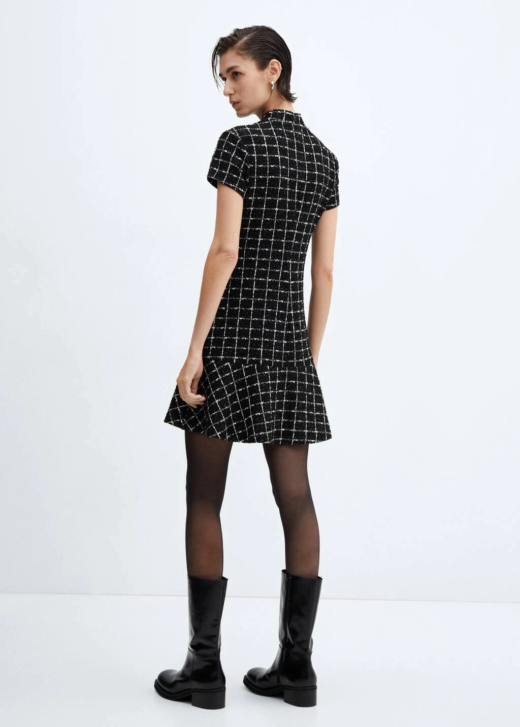 tissu de coton melange, tissu tweed, coupe courte, coupe droite, imprime carreaux, col roule, manches courtes, fermeture eclair a l’arriereComposition: 72% polyester,28% coton