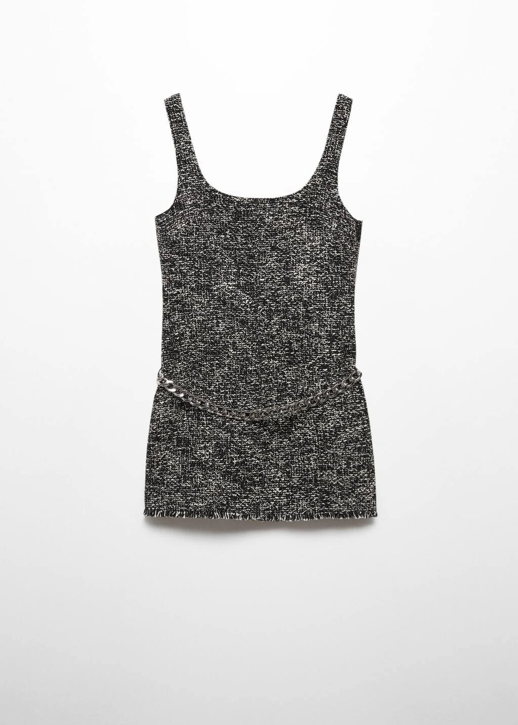 tissu de coton melange, tissu tweed, coupe courte, coupe droite, col carre, sans manches, bretelles larges, fermeture eclair dissimulee sur le cote, chaines decoratives, doublureComposition: 51% coton,25% polyester,19% acrylique,5% viscose. Doublure: 96% polyester,4% elasthanne