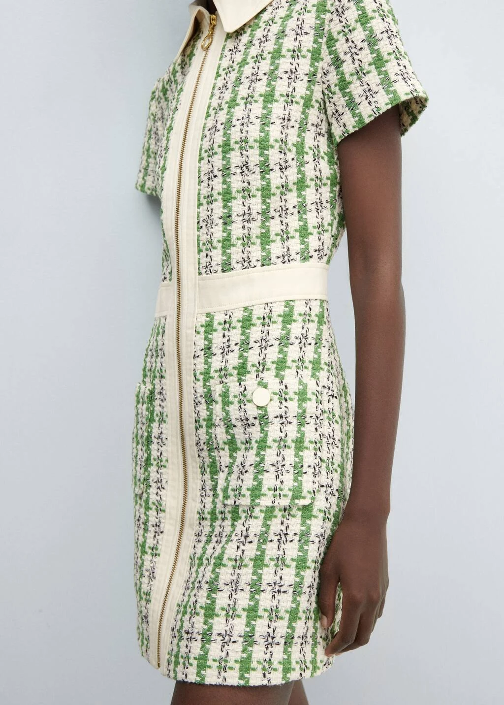 tissu tweed, coupe courte, col chemise, manches courtes, deux poches plaquees sur le devant, fermeture eclair a l’avant, doublure, total lookComposition: 76% polyester,15% acrylique,7% polyamide,2% coton. Doublure: 100% polyester