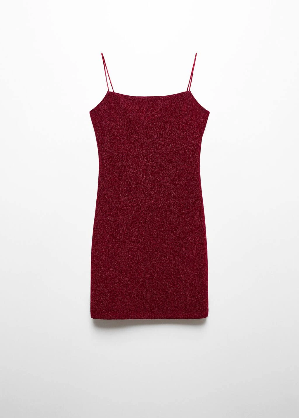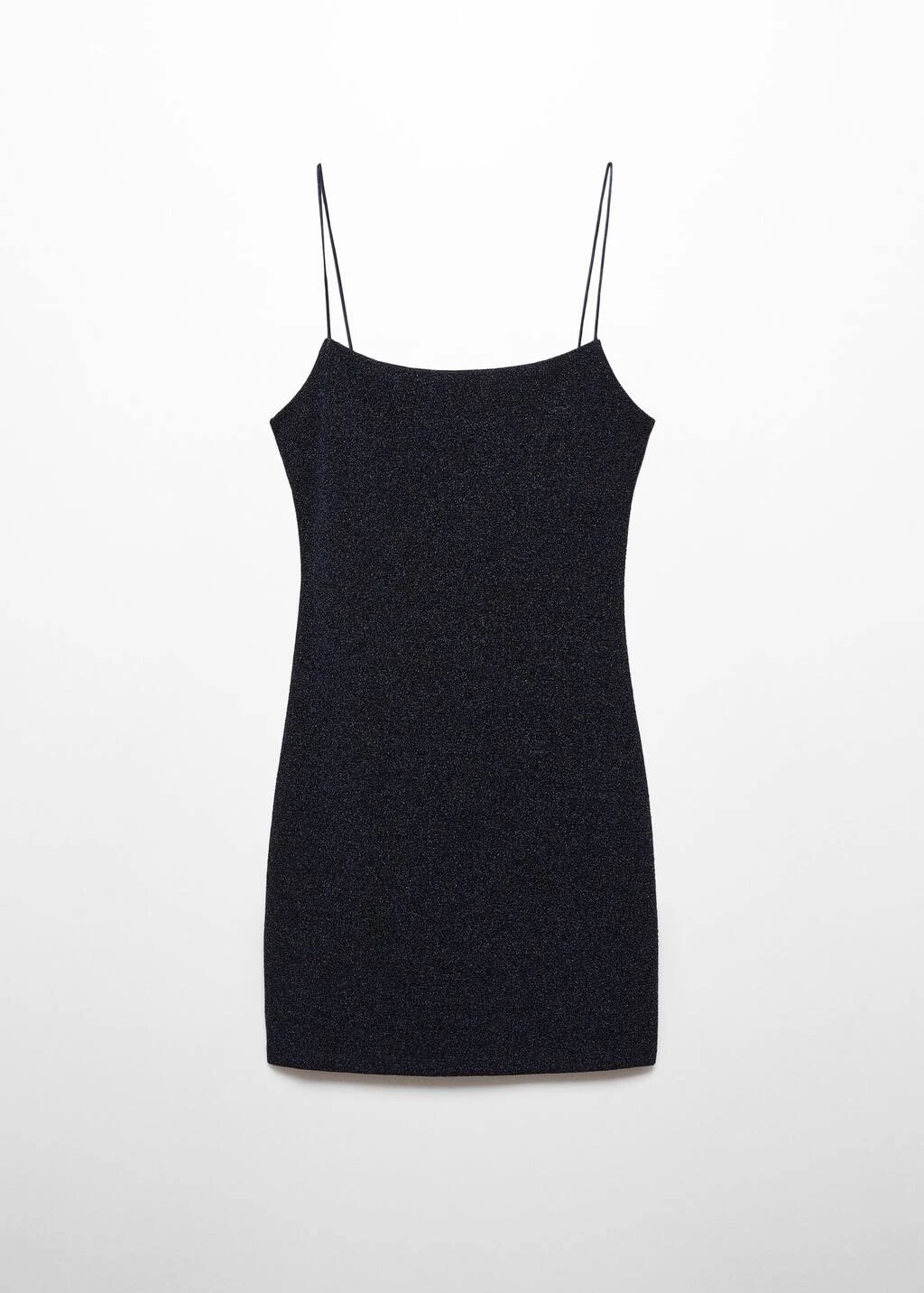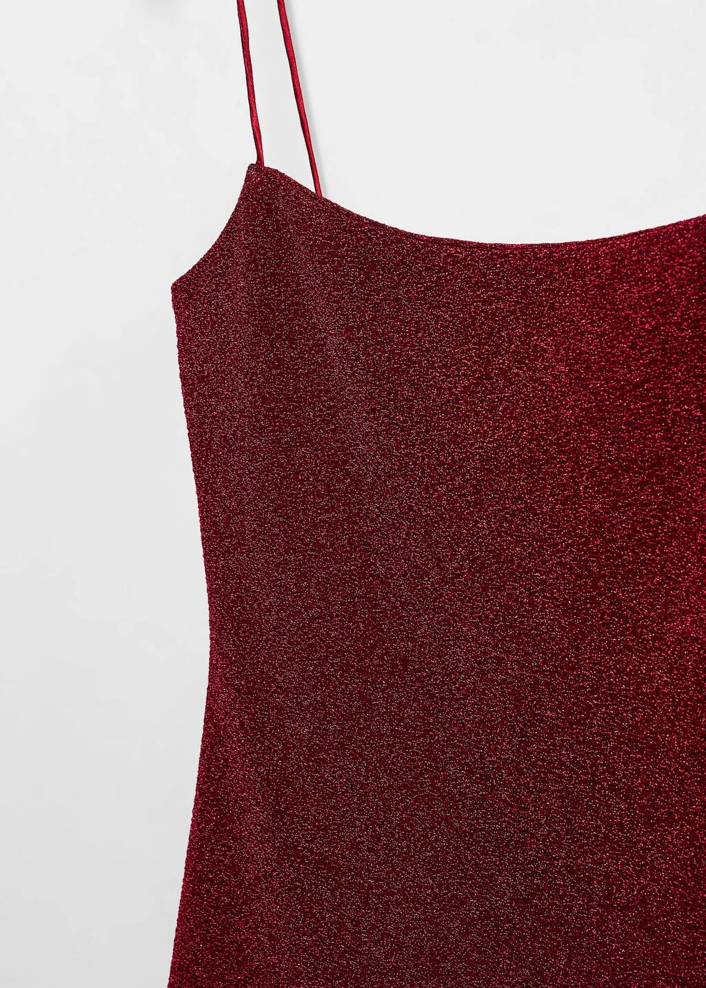 tissu lurex, tissu elastique, coupe courte, ajuste, col echancre, sans manches, bretelles fines, sans fermeture, collection fetes et ceremonies.Composition: 62% polyester,29% polyester avec revêtement de aluminium,9% elasthanne